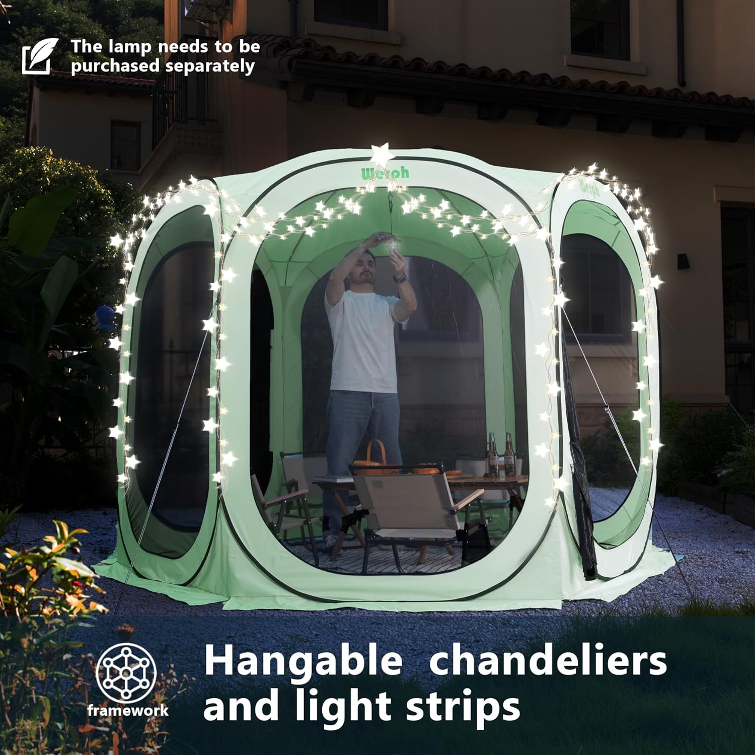 Enhanced Outdoor Living: It featuring a top hook for hanging lamps and a strip light with clips can be attached to the door frame.Perfect for patio gatherings or kid-friendly activities for day or night.Note: Strip lights should be purchased separately