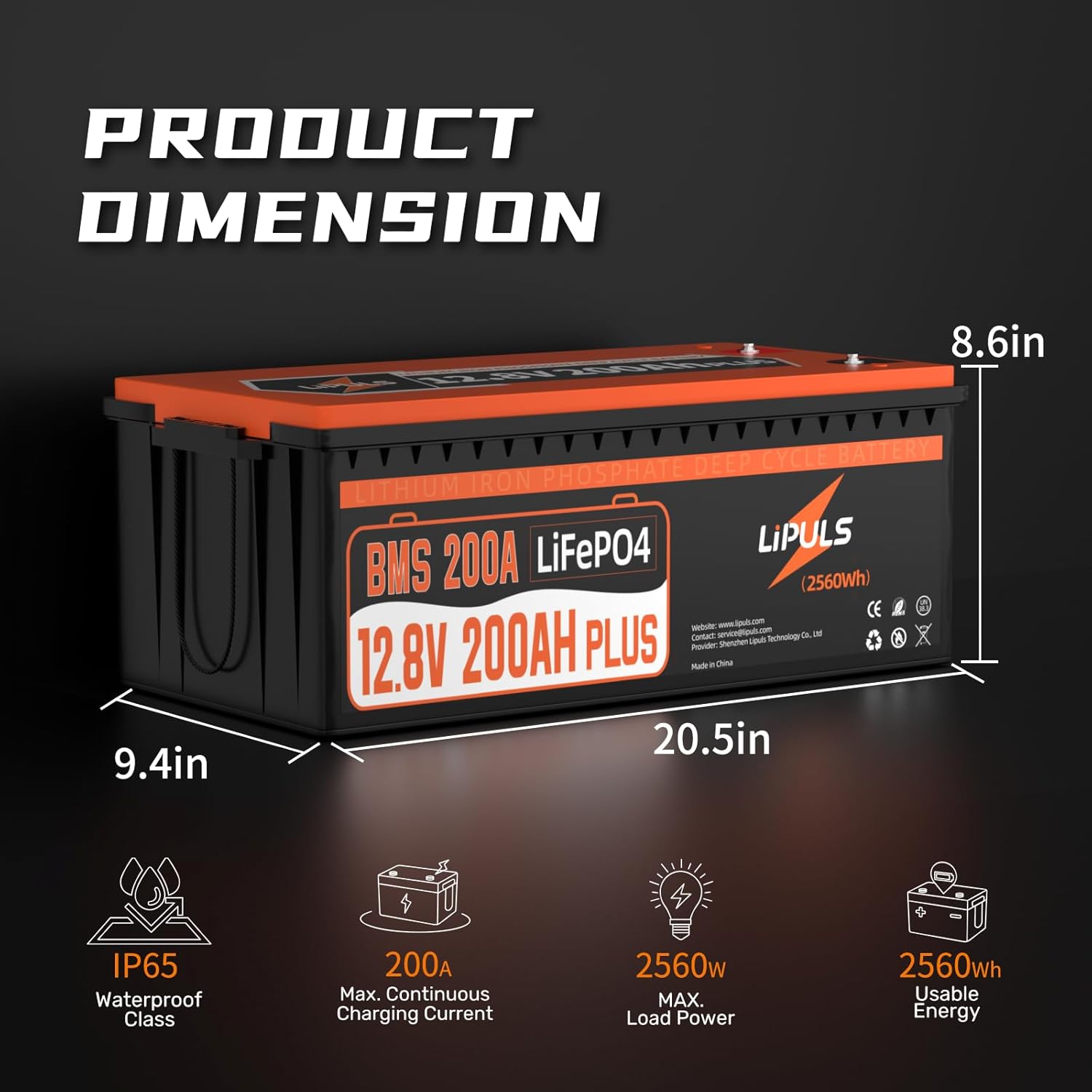 ⭐[𝟐𝟎𝟎𝐀 𝐁𝐌𝐒 & 𝐏𝐫𝐞𝐦𝐢𝐮𝐦 𝐂𝐞𝐥𝐥𝐬] Discover the excellence of LIPULS 12V 200Ah PLUS LiFePO4 Battery. Crafted with Automotive Grade LiFePO4 Cells and an upgraded 200A BMS board, LIPULS 200Ah batteries prioritize safety and performance. The EV Grade-A cells and built-in BMS offer top-tier protection against overcharge, over-discharge, over-current, short circuits, and high temp, while maintaining an outstanding self-discharge rate. In addition, our 12.8V 200Ah Plus lithium battery boasts 2560W Max.Load Power, making it a must-have for many of your applications.