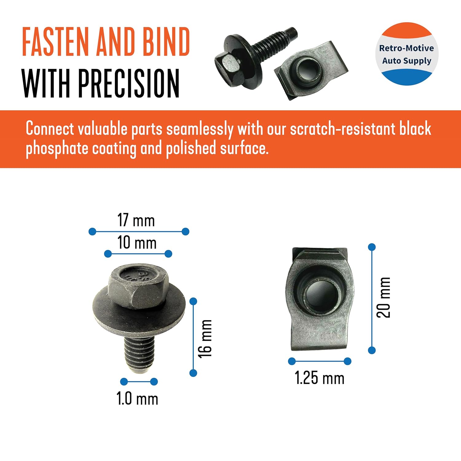 Versatile Usage – The U-Nuts fit a broad panel range, making them suitable for multiple automotive applications. Whether you’re working on fenders, trim, or moldings, these bolts and clips provide a versatile and reliable solution.
