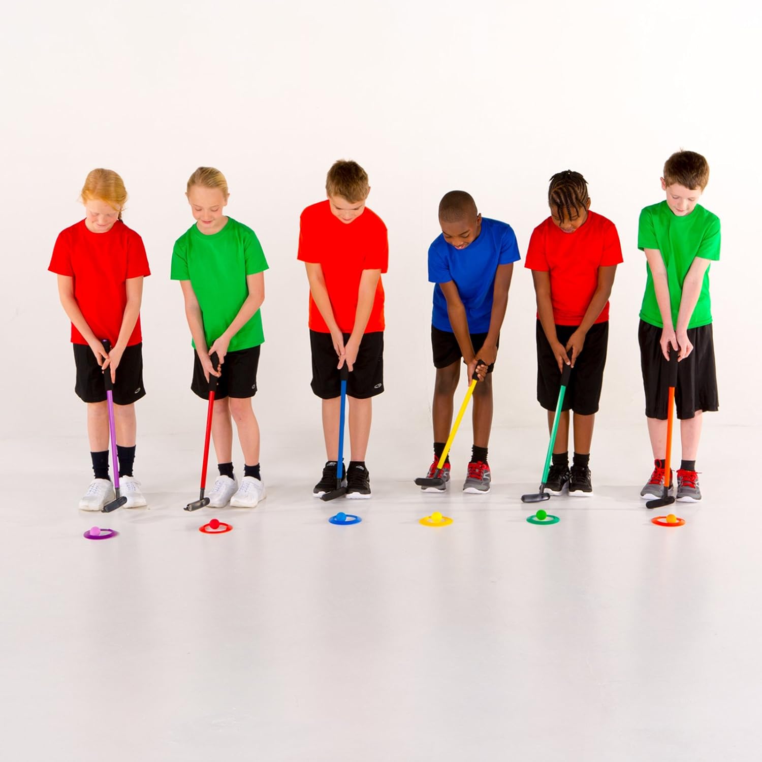 Fun 6 color mini golf set includes (6) 26 inch mini putters, 18 golf balls and 12 practice targets