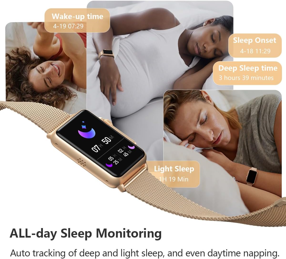 Comprehensive Wellness Monitoring: The FITVII fitness tracker offers real-time monitoring of key fitness metrics, including heart rate, blood pressure, and blood oxygen levels. Additionally, it tracks your sleep patterns, including the depth and duration of your sleep cycles (deep, light, and awake phases). Please note that this fitness tracker is not a medical tool and is not intended for diagnostic purposes.