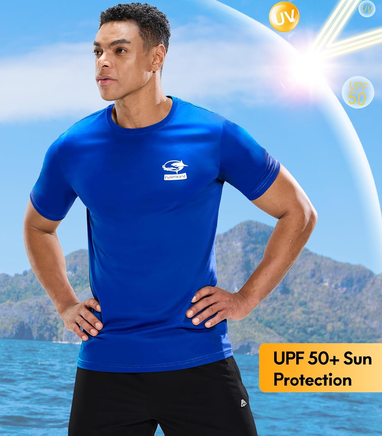 Haimont Men’s UPF 50+ Sun Protection Fishing Shirts Short Sleeve Quick Dry Swim T-Shirt UV Workout Athletic Tee Shirt