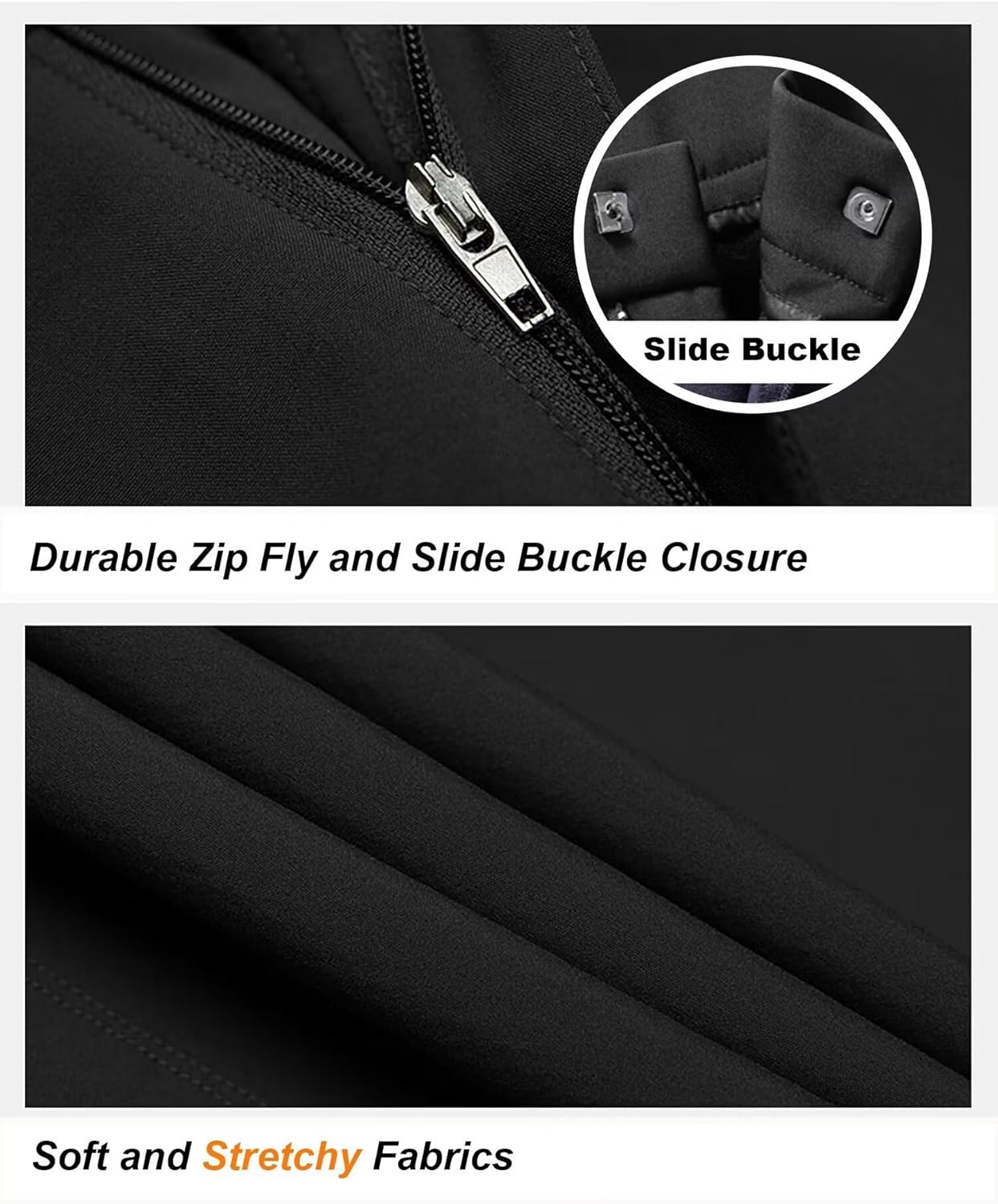 The stretchy fabric covers the whole pants, comfortable and skin-friendly