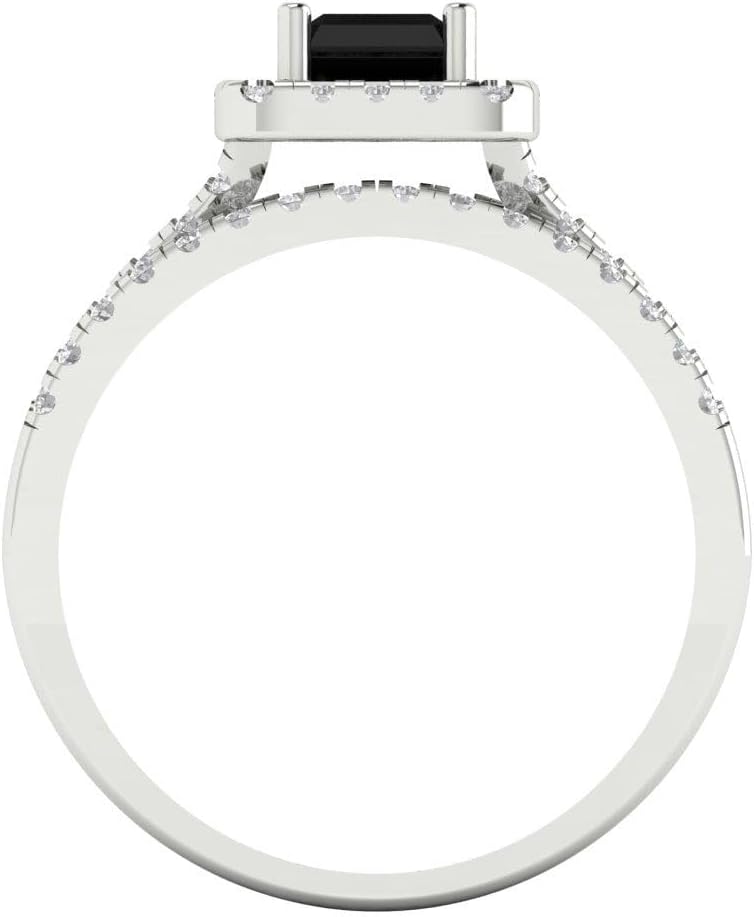 1.54 carat Emerald Round Cut Halo Solitaire Natural Black Onyx Wedding Anniversary Bridal Ring band set 14k White Gold