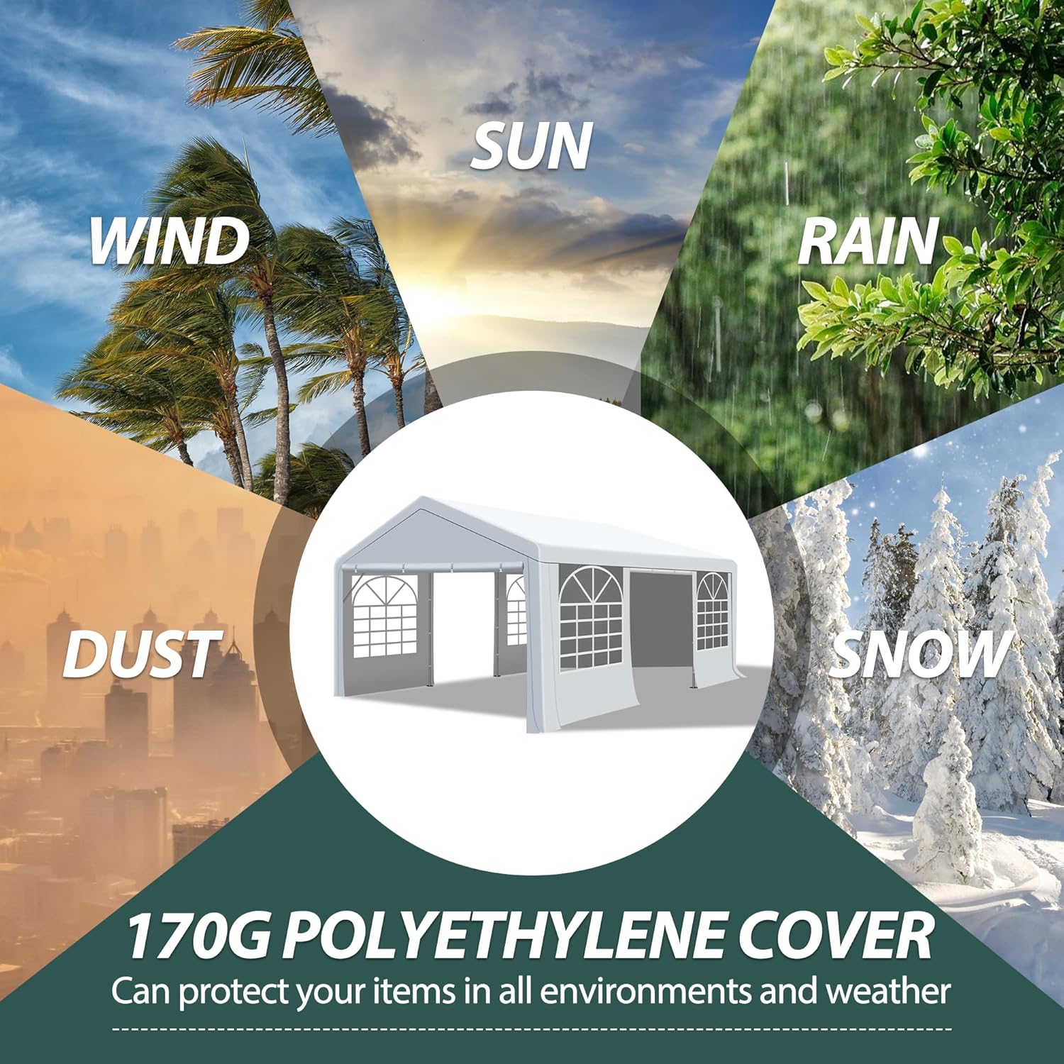 【SHADE AND VENTILATION】: Removable sidewalls, clear PVC windows and zipper door design allow for cross ventilation and exhaust in hot weather, providing your guests with good light and air circulation while blocking harmful UV rays for protection.