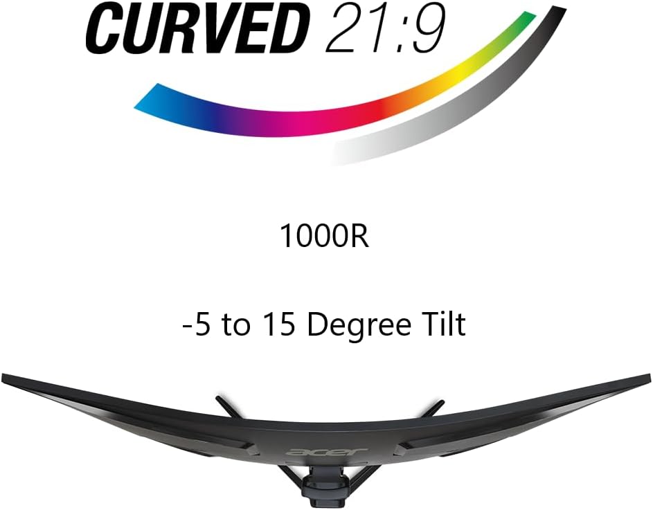 Acer Nitro 34" UWQHD 3440 x 1440 1000R Curved PC Gaming Monitor | Adaptive-Sync Support (FreeSync Compatible) | 100Hz Refresh | 1ms VRB | AdobeRGB 90% | 2 x DP 1.2 & 2 x HDMI 2.0 | EDA343CUR Hbmiippx