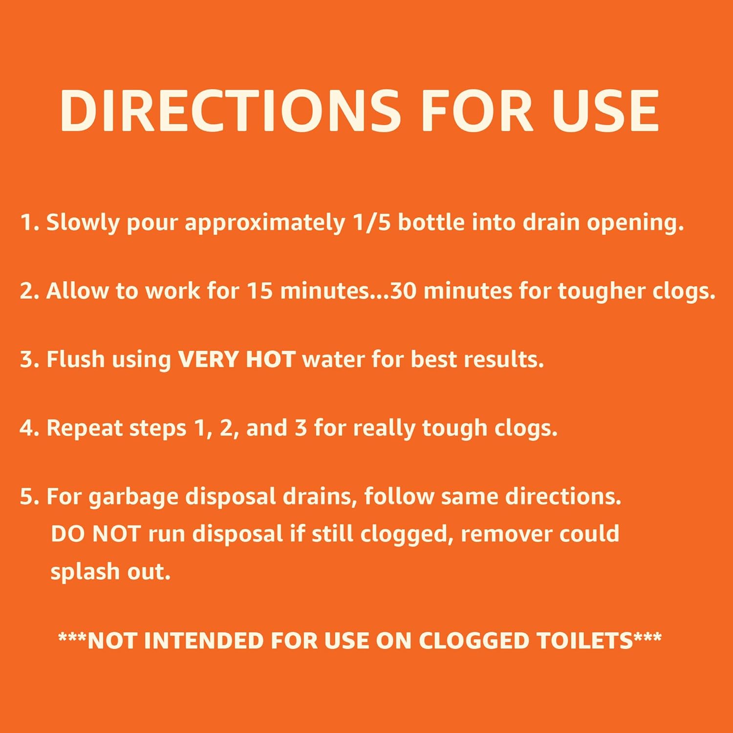 Clears heavy clogs dissolving hair, grease and gunk so drains flow freely again ***NOT INTENDED FOR USE ON CLOGGED TOILETS***