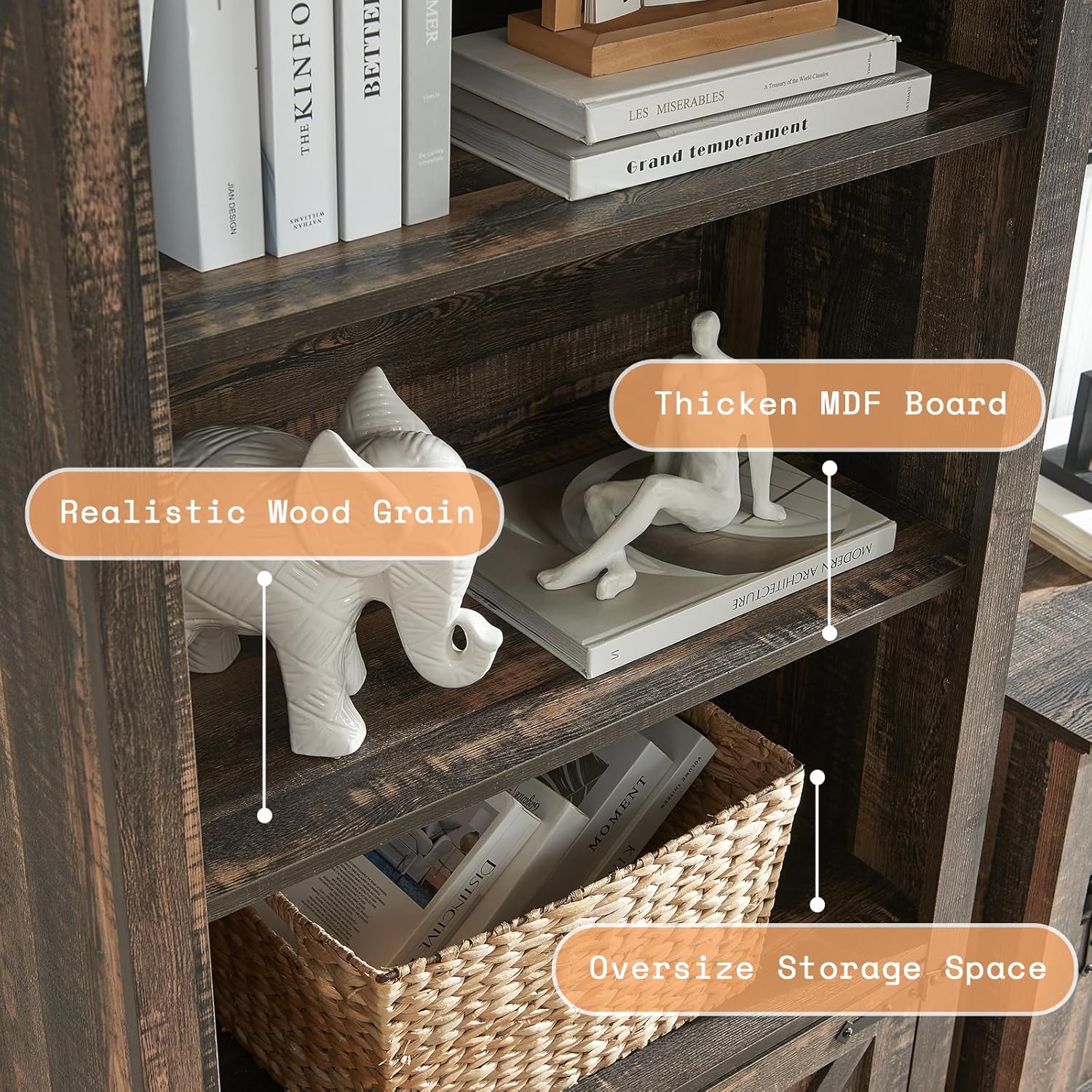 Multi-functional Bookcase: Our farmhouse 5-tier bookshelf is a versatile piece of furniture with adjustable shelves that can be used as a display cabinet, a storage cabinet, and a kitchen storage cabinet.
