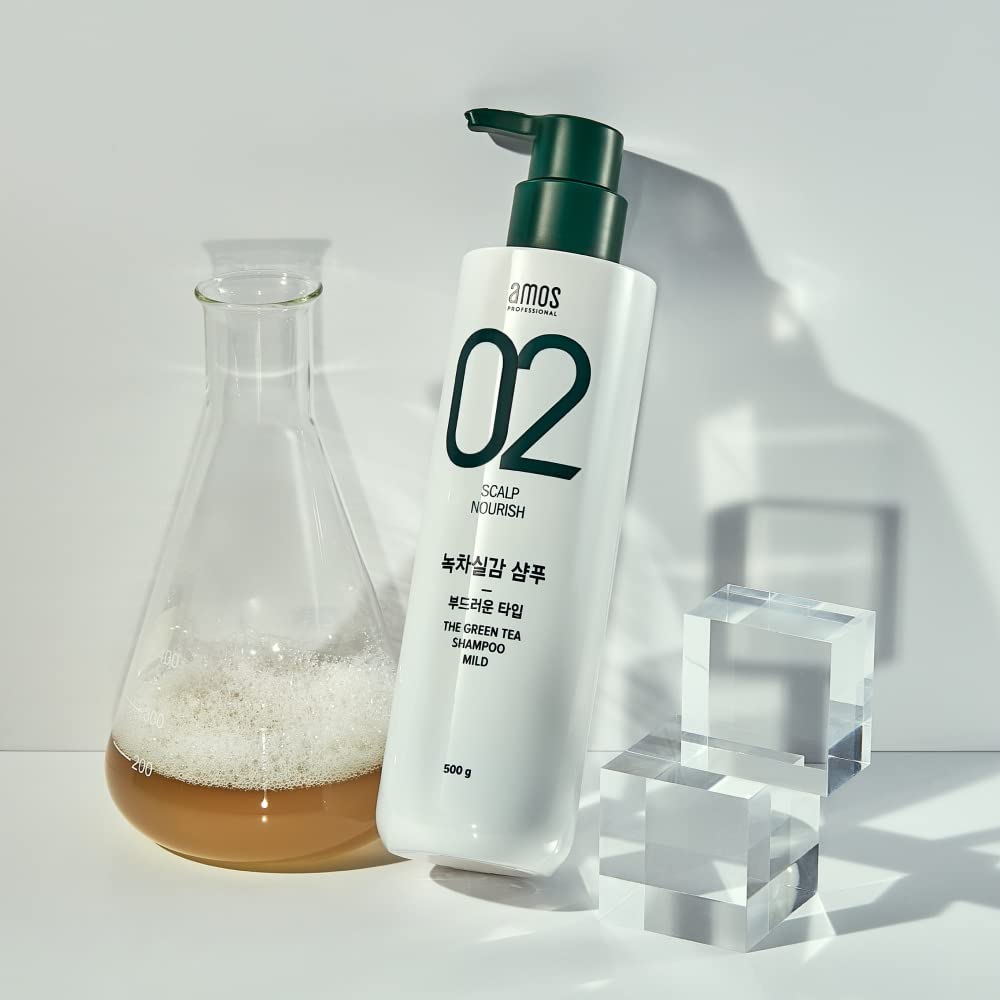 AMOS PROFESSIONAL The Green Tea Shampoo Sensitive [For Sensitive Scalp] 17.6oz (500g) | Gentle Anti-Thinning and Anti- Hair Loss Shampoo for Hair Growth | Korean Hair Salon Brand