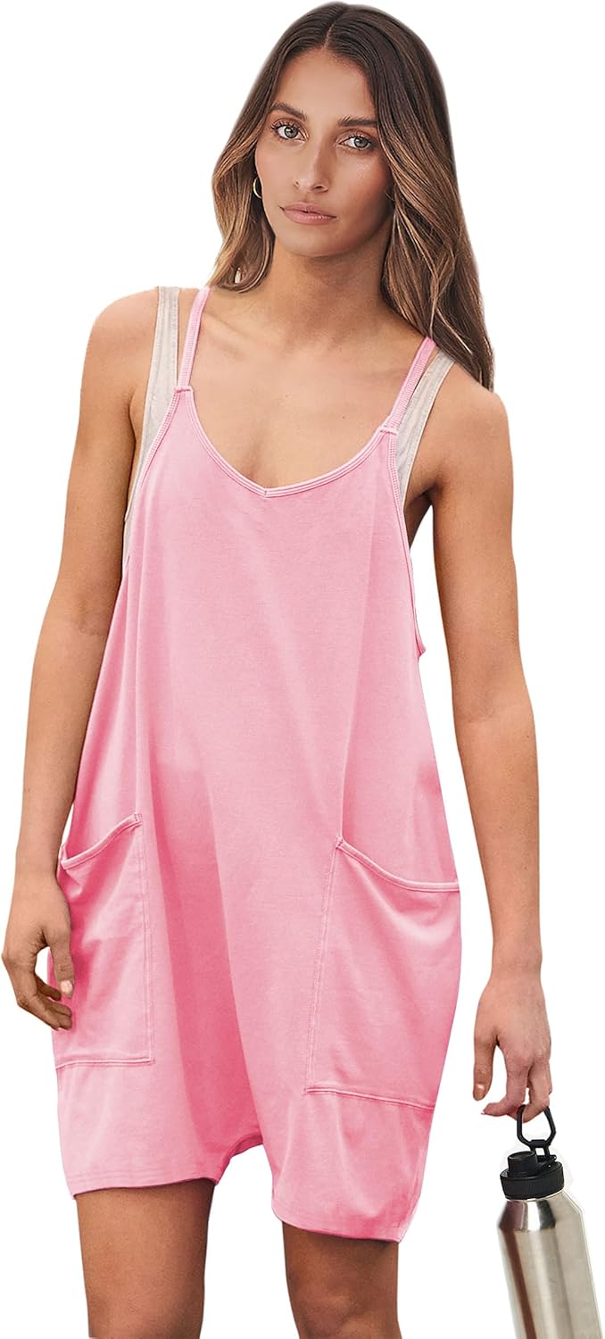 ANRABESS Womens Summer Casual Sleeveless Romper Loose Spaghetti Strap Shorts Overalls Jumpsuit with Pockets 2024 Clothes