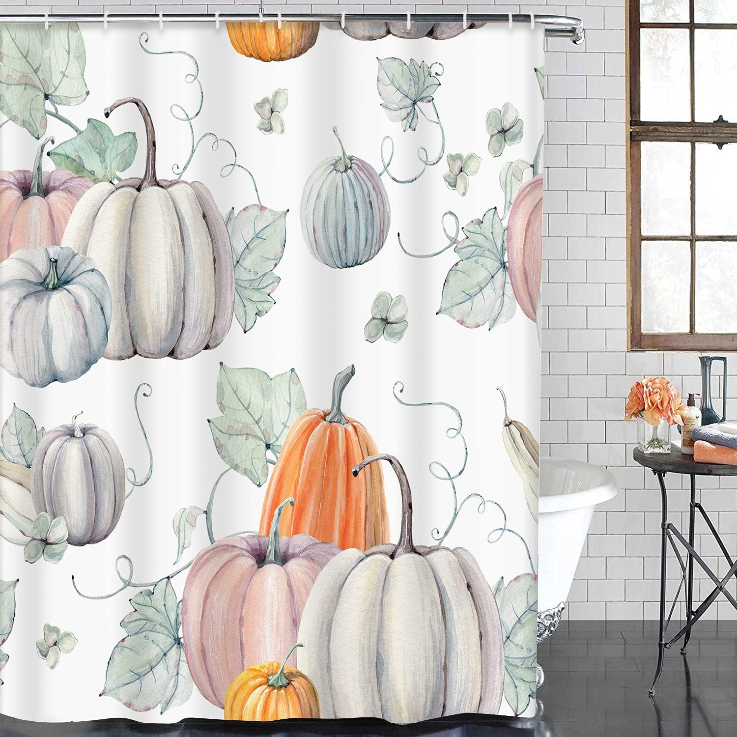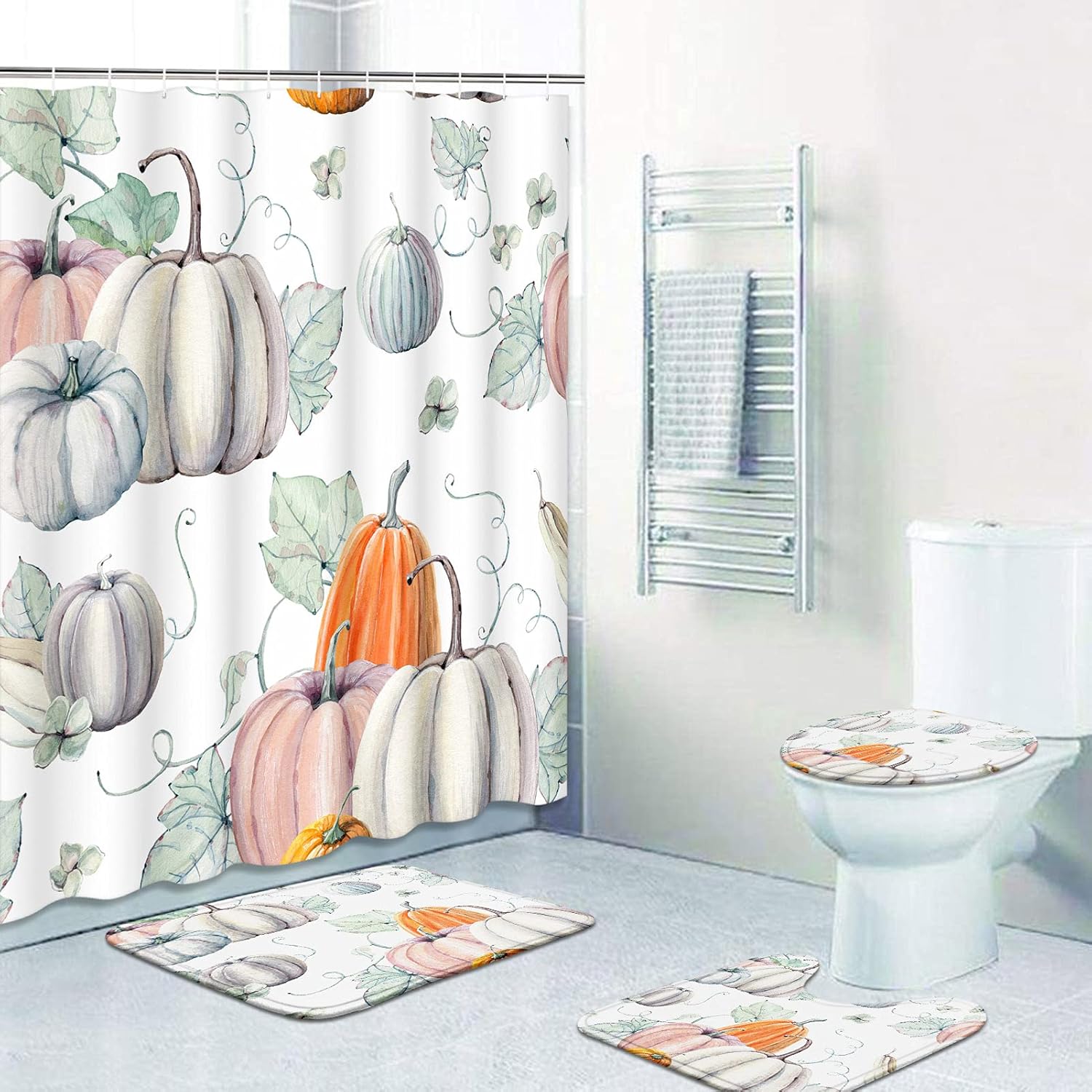 ArtSocket Watercolor Pumpkins Bathroom Set with Shower Curtain and Rugs Accessories,It is Thanksgiving Halloween Recipe Fall Shower Curtain Set, Fall Shower Curtain for Bathroom Decor 4 Pcs