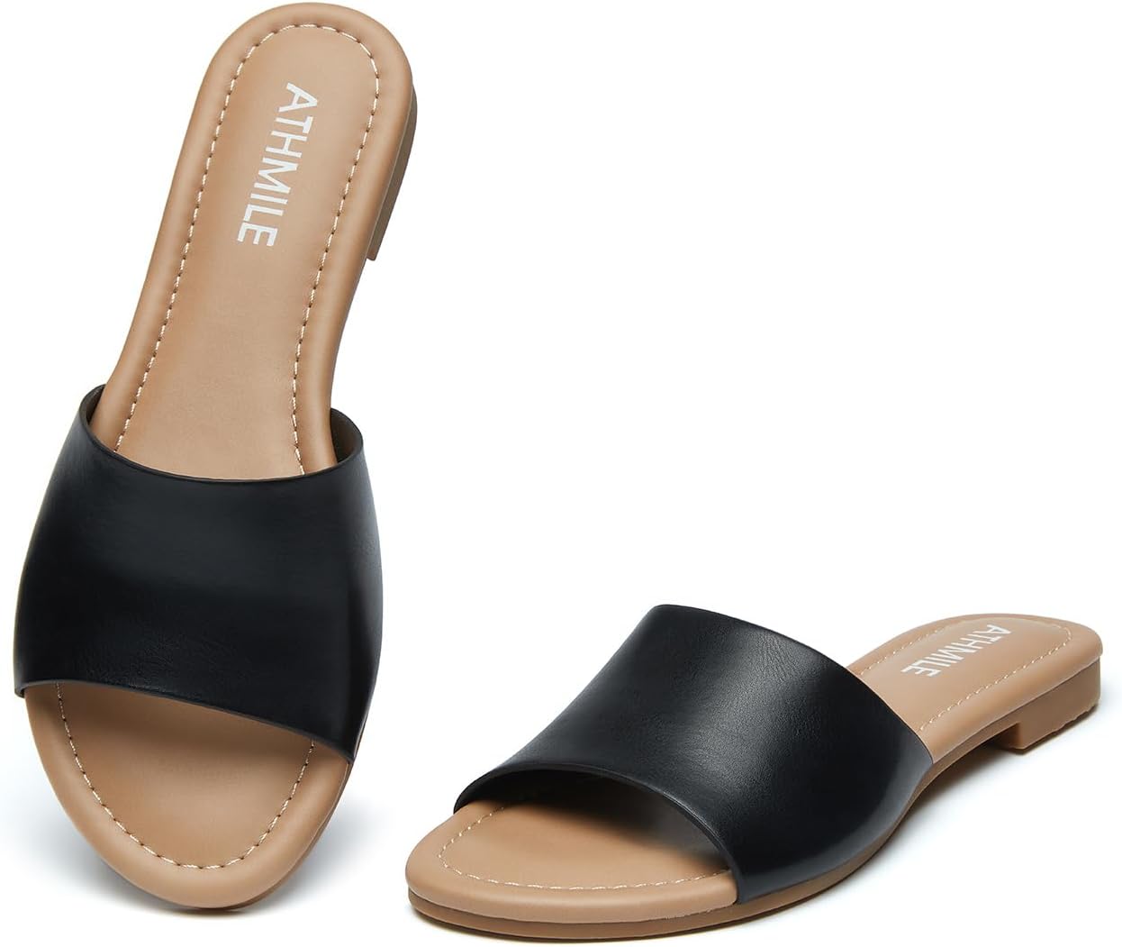 ATHMILE Womens Sandals One Band Slip-on Open Toe Flats Summer Dress Slides Sandals for Casual Party Wedding Beach