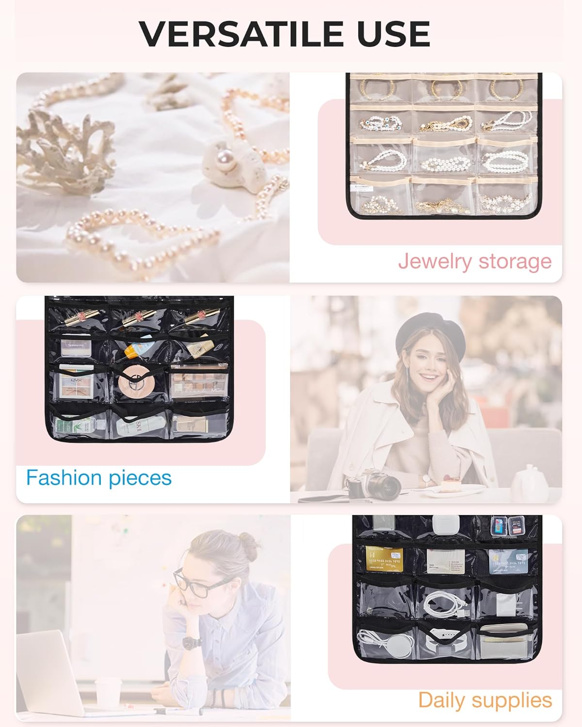 High-quality Materials: Jewelry hanger organizer is made of premium polyester and high-quality PVC pockets, ensuring durability and stability. The earring organizer sturdy materials effectively protect your precious jewelry accessories and extend their lifespan.