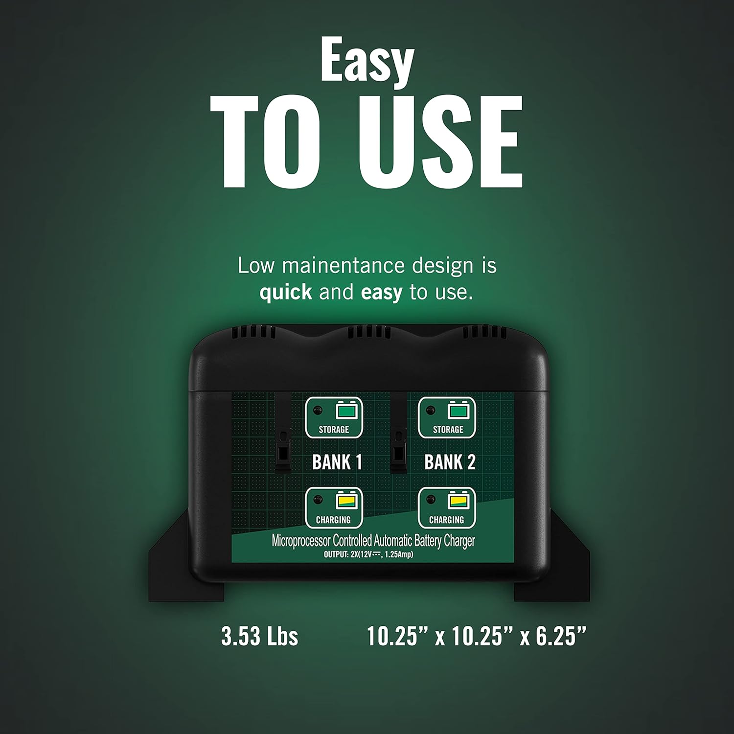 Battery Tender 2 Bank Multibank Charger – 2.5 AMP (1.25 AMPs Per Bank) – Smart 12V Multi Battery Charger and Maintainer – 021-0165-DL-WH