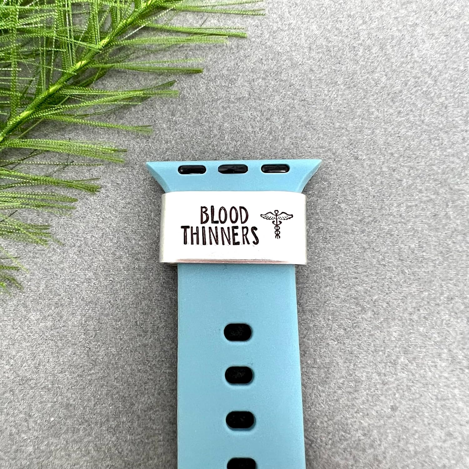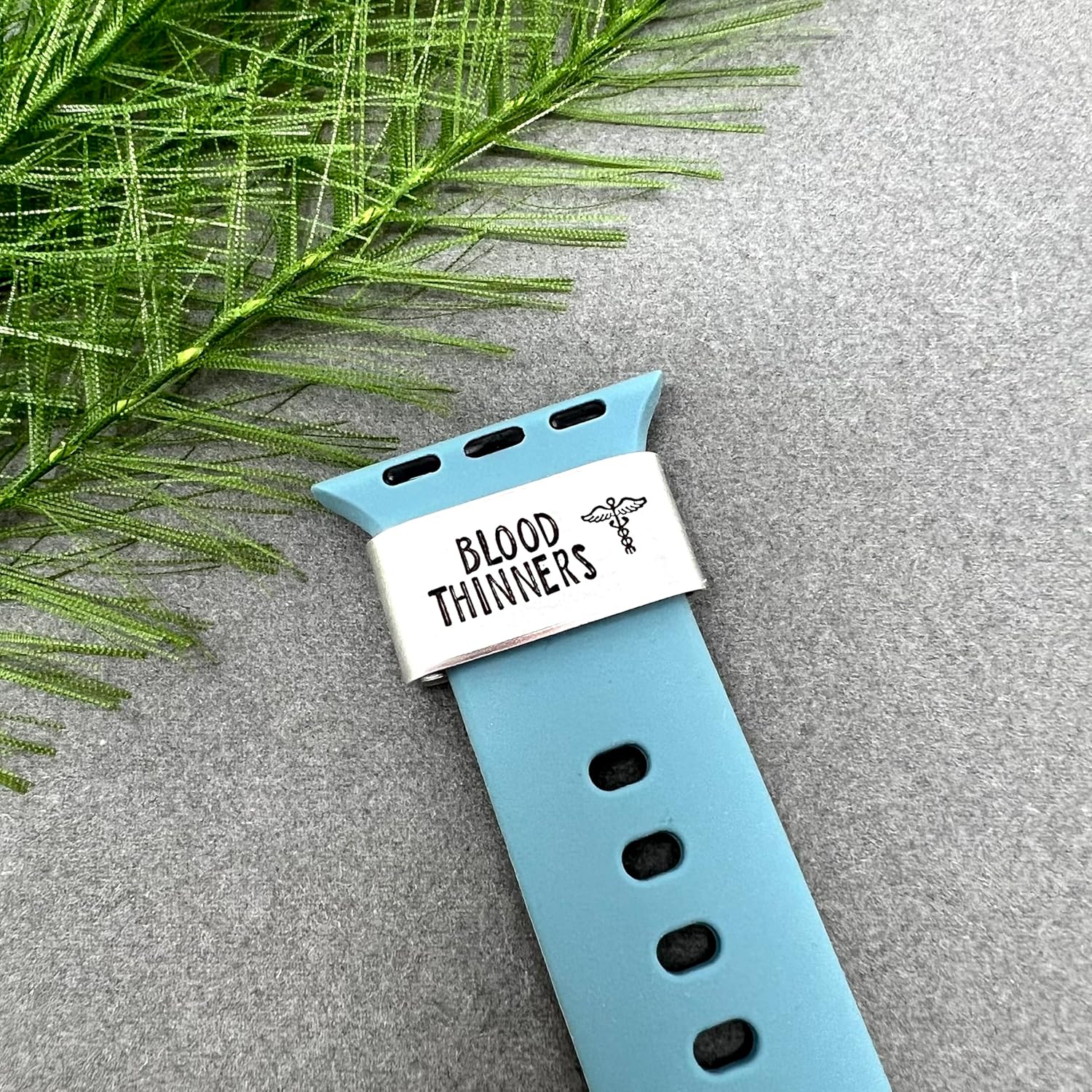 Blood Thinners Medical ID Alert Watch Band Charm, Hand Stamped Plate Tag for Smart Watch, Made of Lightweight Aluminum, Charm Only – Band Not Included