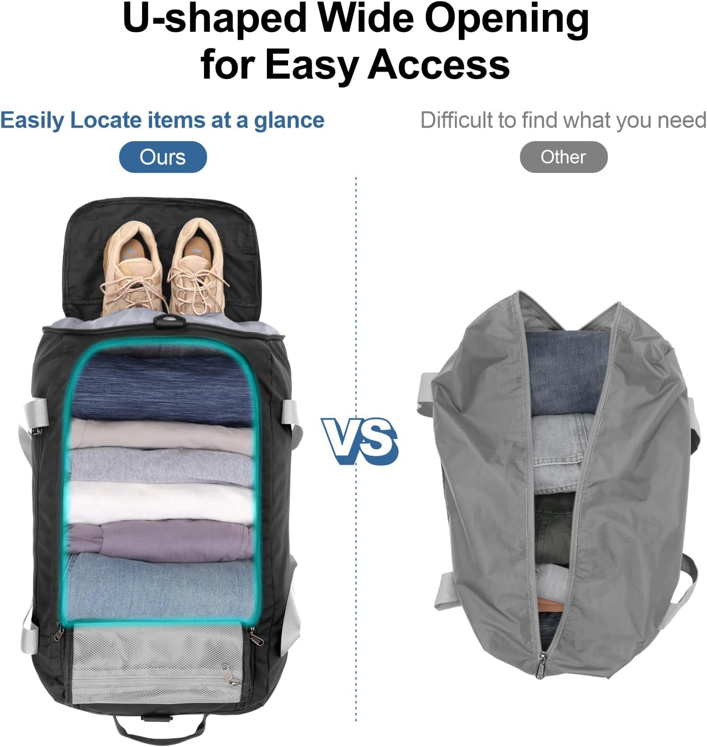U-shaped Wide Opening for Easy Access: The extra large opening combined with a smooth zipper makes it easy and quick to access the contents. Never waste time rummaging. Compared to other sports gym bags for men, this overnight bag allows you to pack more items