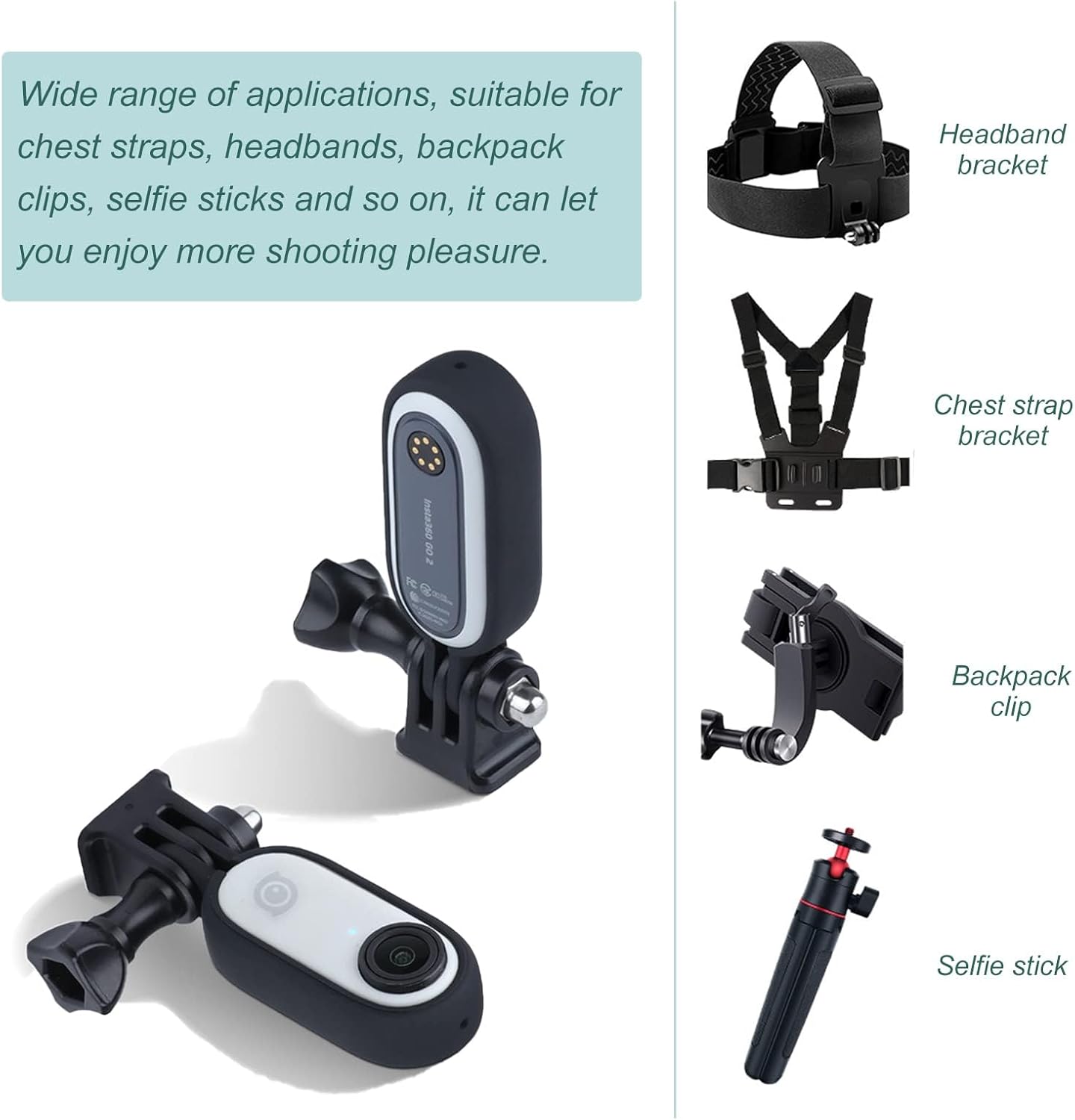 Adapter: The hole position of insta 360 go2 mount is designed accurately with a standard 1/4 screw hole. It also has a long screw, which can be used with the camera frame and is easy to install
