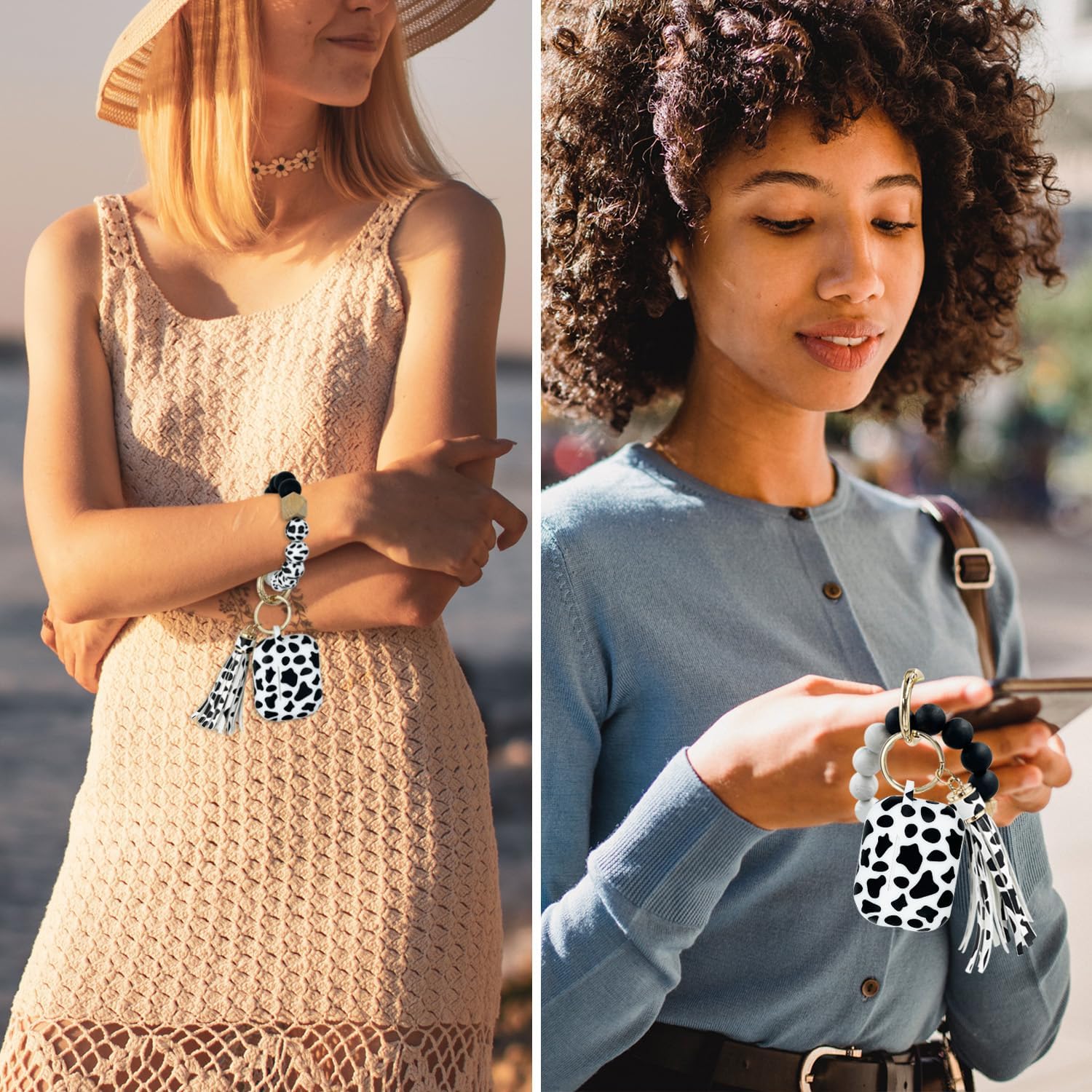 [Bracelet Wristlet Keychain] Come with cute beaded key holder bracelet are made of BPA-free and food grade silicone, a wooden bead, gold-plated keyring and PU leather tassel. Specifically designed for girls and women, perfect for decorating your case for airpod pro and easy to carry.