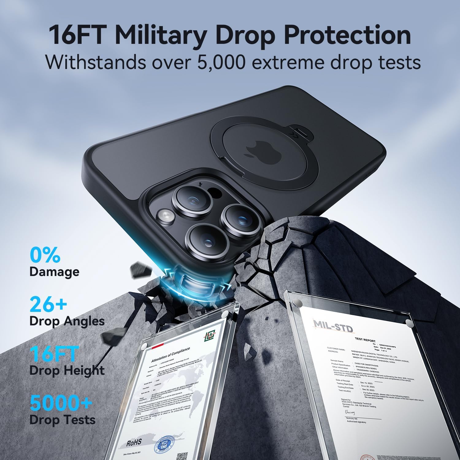 【Redefining Military-Grade Drop Protection】Based on 5000+ extreme drop resistance tests, the MagicStand case’s DURABILITY AND STURDINESS surpass most general phone cases. Furthermore, the shockproof polycarbonate back and the airbag cushions increase its durability and protect your phone against everyday drops and bumps. A 2.5 mm offset border over the camera opening prevents the lens from being scratched; a 1.5 mm bezel over the screen keeps your Phone screen from damage.
