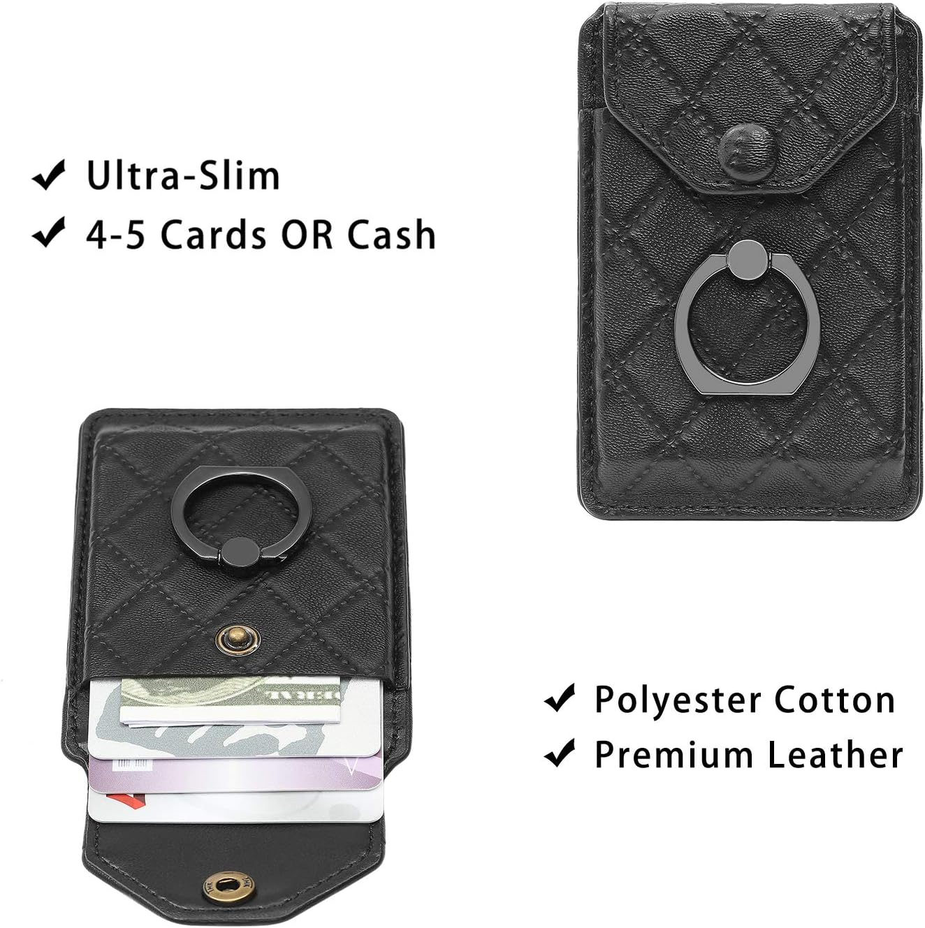 Cell Phone Card Holder RFID Ring Stand Stick on Wallet Card Holder of Phone All Smartphones Adhesive Credit Card Holder for Cell Phone-Black