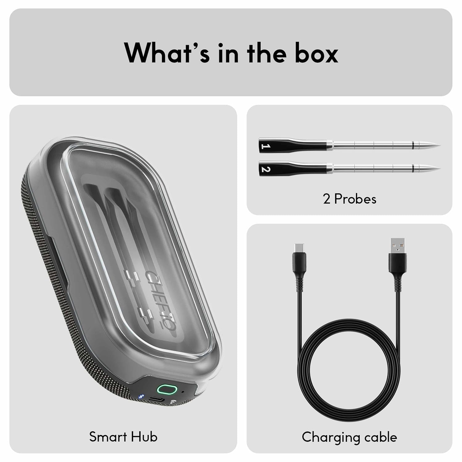 CHEF iQ Sense Smart Wireless Meat Thermometer with 2 Ultra-Thin Probes, Unlimited Range Bluetooth Meat Thermometer, Digital Food Thermometer for Remote Monitoring of BBQ Grill, Oven