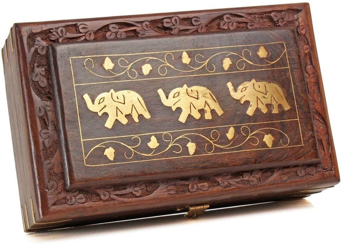 Christmas Gift Wooden Jewellery Keepsake Storage Box with Hand Carved Elephant Design Decorative Jewelry Storage Organizer Box Gifts