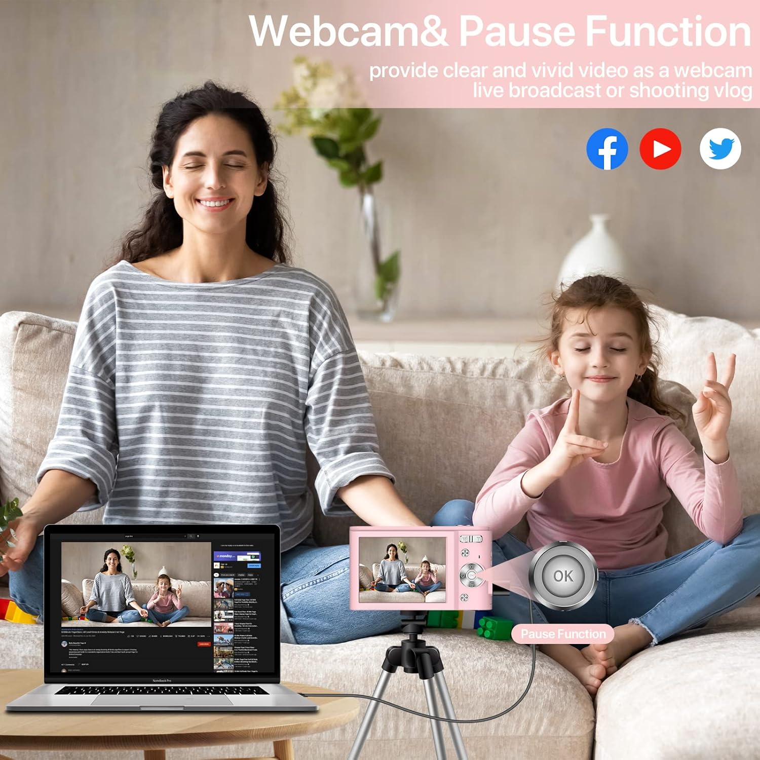 【Webcam& Pause Function】Connect to a PC and work as a webcam for video calls & live streaming. You can use this compact digital camera to make video calls or start a live broadcast to share content on social media anytime. The Vlogging& YouTube camera also supports the pause function, which allows you to continue recording in the same file without restarting a new file.