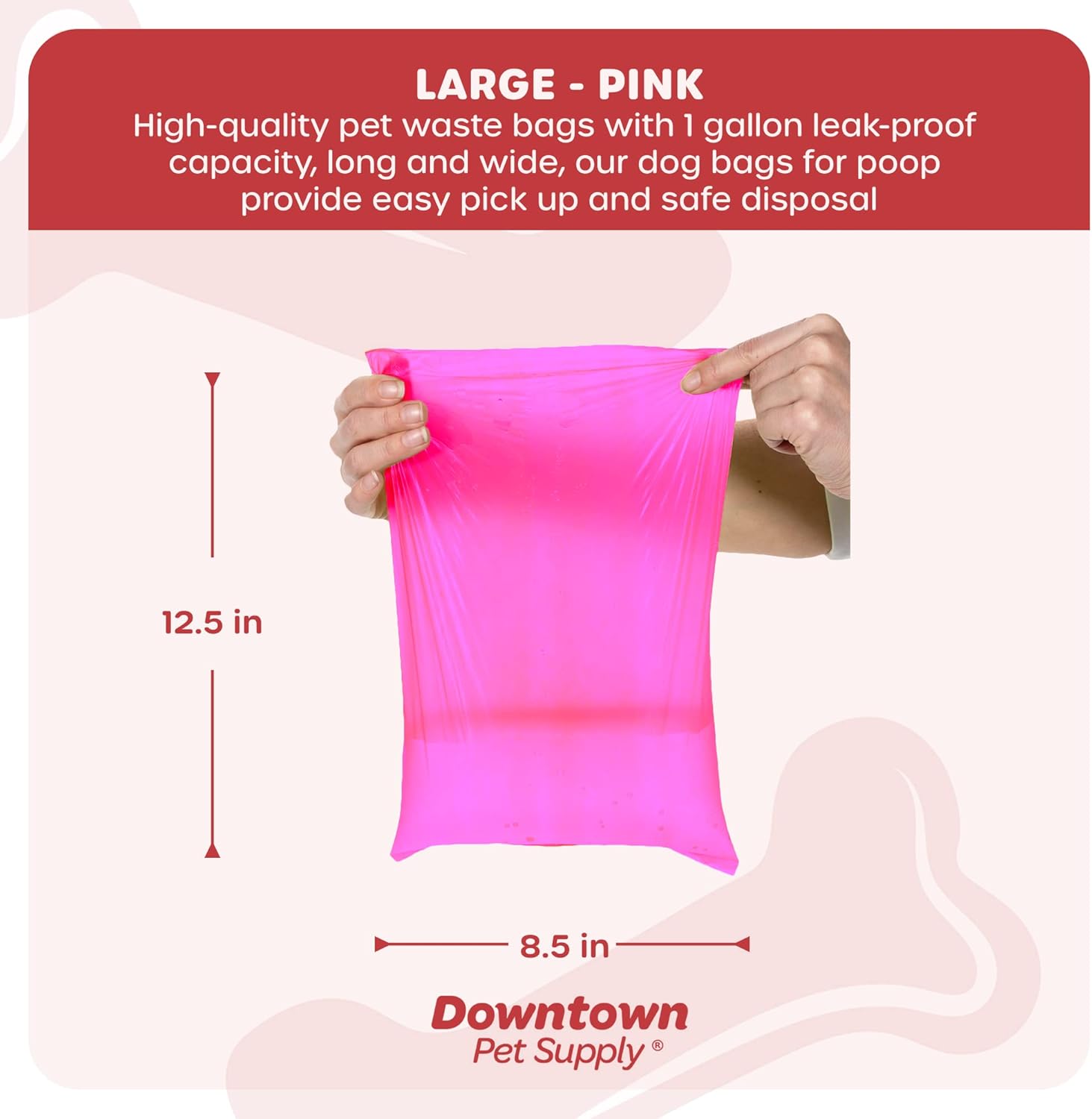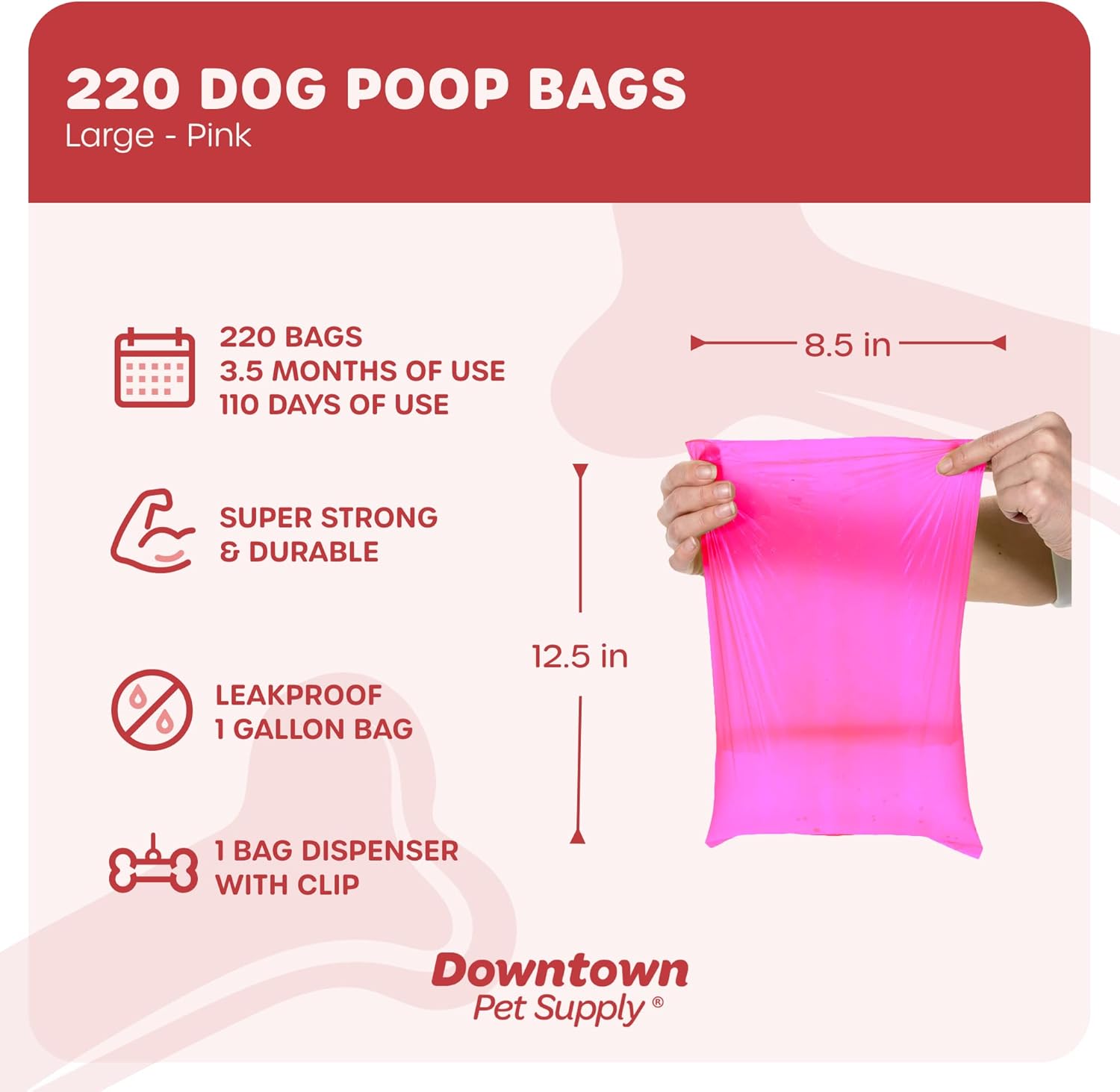 Downtown Pet Supply 220 Count Dog Poop Bags Refills with Leash Clip and Bone Bag Dispenser, Pink – Dog Waste Bags Unscented and Leak-Proof with Dog Poop Bag Dispenser – 12.5 x 8.5″