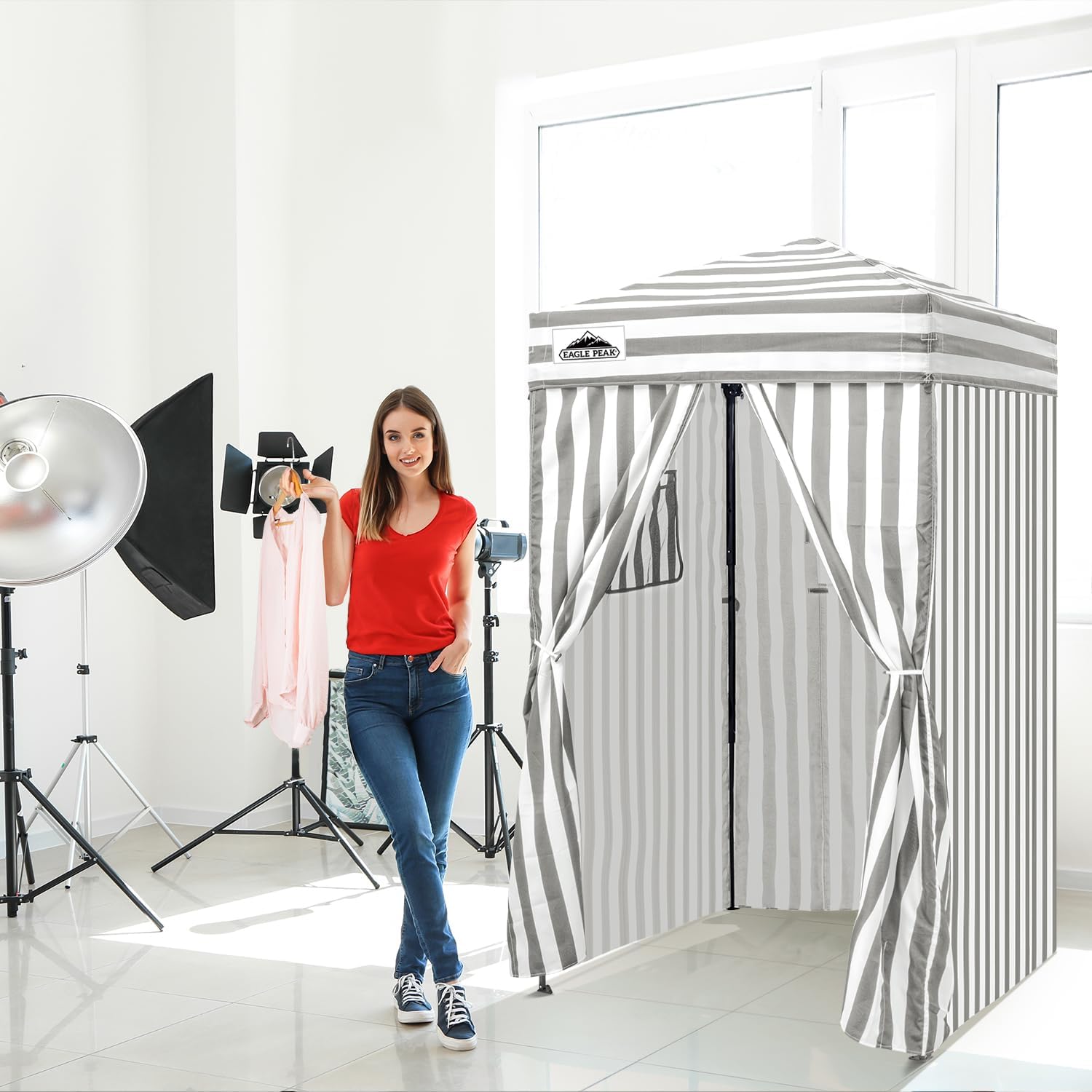 EAGLE PEAK Flex Ultra Compact 4×4 Pop-up Canopy, Sun Shelter, Changing Room, Portable Privacy Canopy Cabana for Pool, Fashion Photoshoots, or Camping, Gray/White