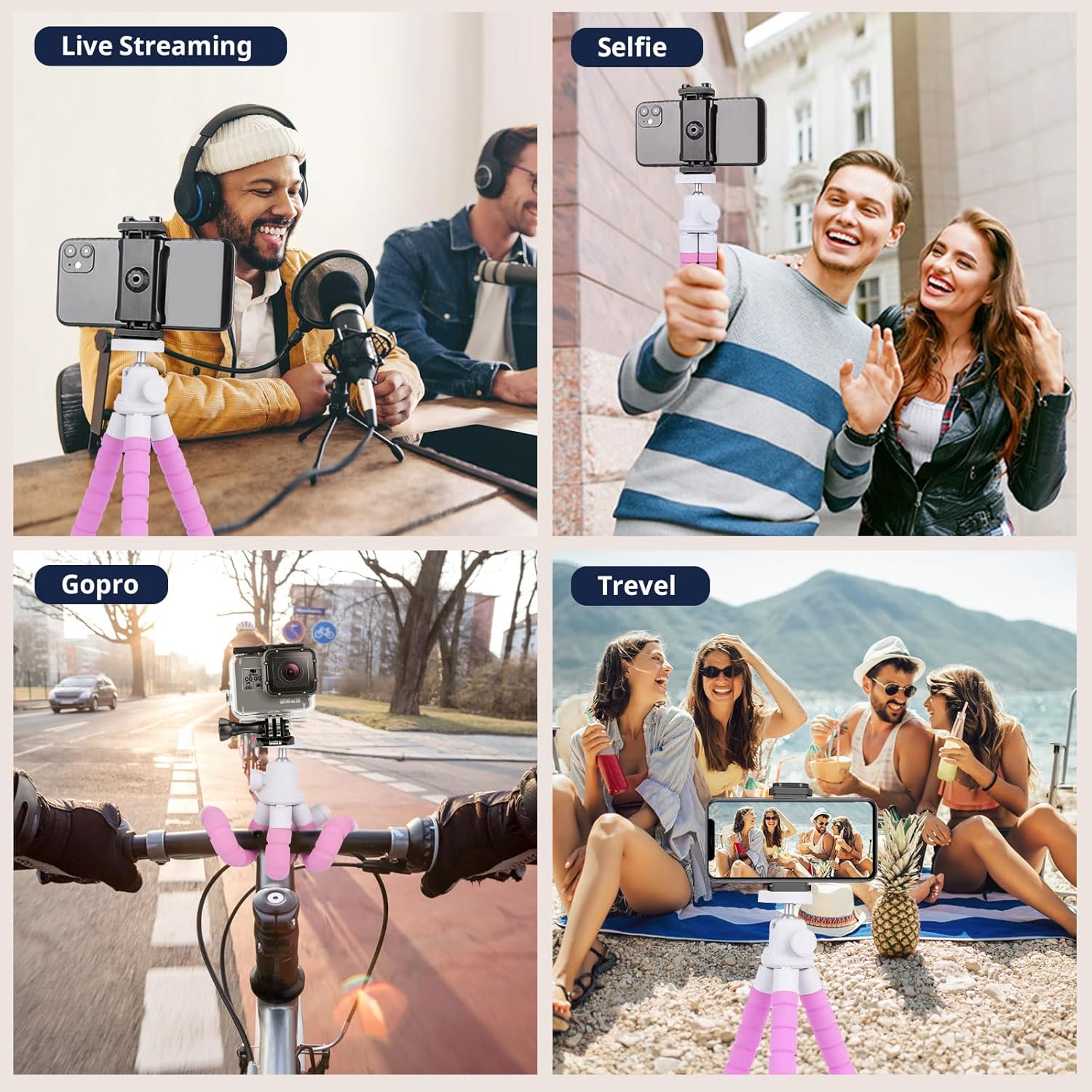 Eicaus Portable and Flexible Phone Tripod Stand for Cellphones, Compact Mini Tripod with Remote for Video Recording, Vlogging and Travel Photography(Pink)