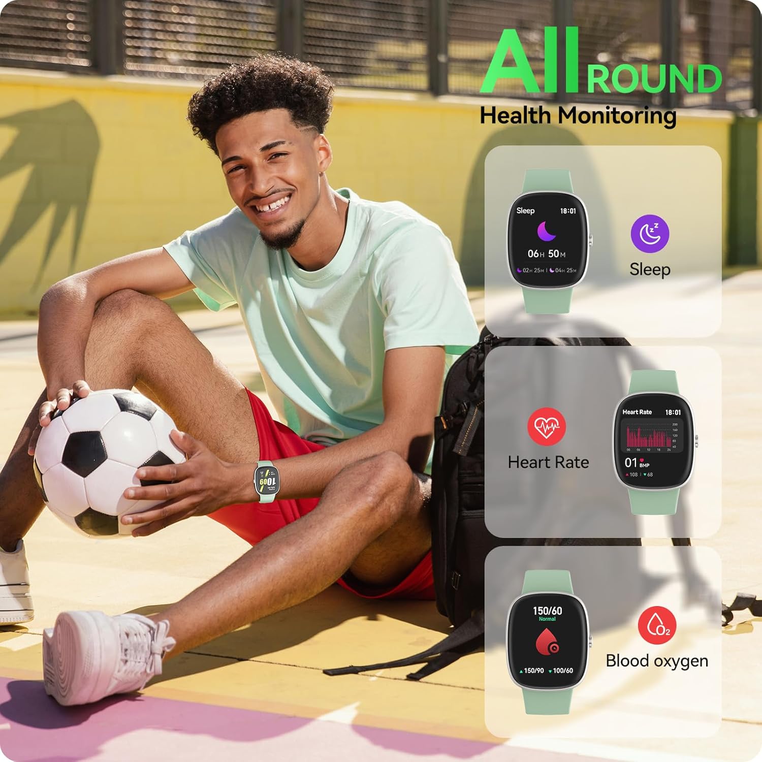 【24/7 Health Monitoring】This 2024 upgrades fitness watch monitors your blood oxygen levels(SpO2), heart rate, and tracks your sleep patterns, including deep sleep, light sleep, and awake duration. Additionally, the multifunctional smart watch features sedentary reminders, hydration reminders, and even provides menstrual cycle reminders for women. Stay in control of your day and never miss a beat.