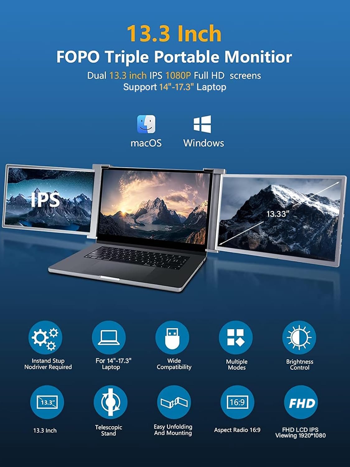 FOPO 13.3 INCH Triple Portable monitor for Laptop Provides an Immersive Visual Experience