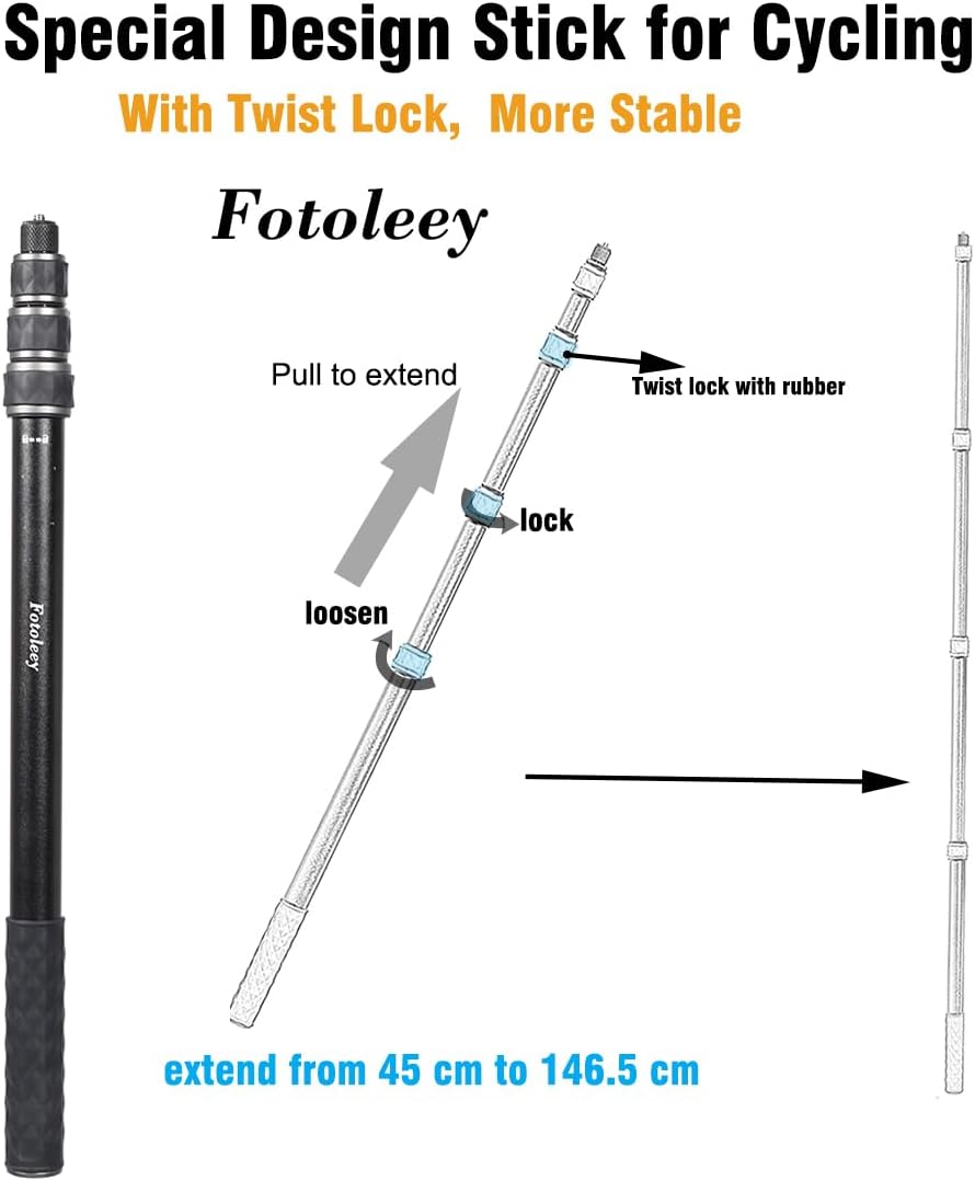 The invisible stick is specifically designed for cycling. It has a twist lock, making it much more stable than a common stick without a locking function. It can extend from 46cm to 146.5 cm