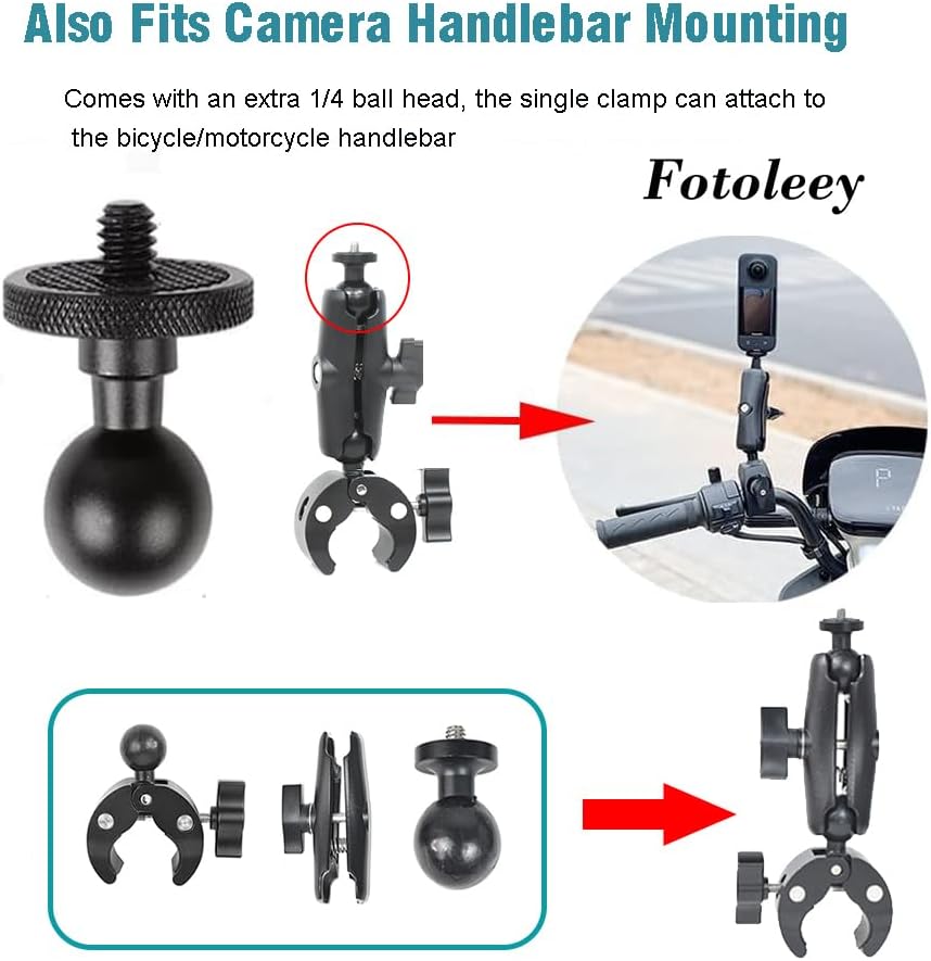 Fotoleey 360 camera motorcycle kit with invisible Stick- Motorcycle Bike Handlebar Clamp Mount for Insta360 X4, X3, X2, GoPro Hero 12, Hero 11- Action Camera Motorcycle Mount Bike Mount Kit
