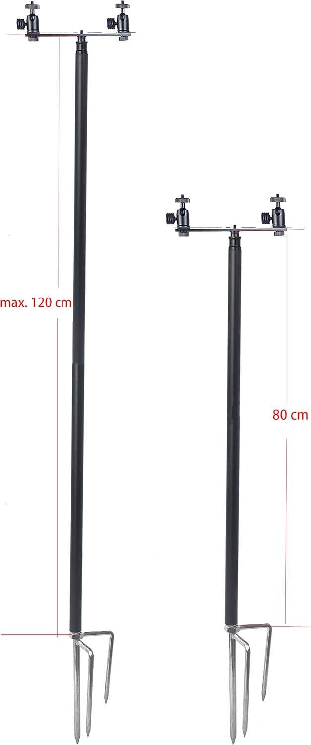 Fotoleey Trail Camera Mounting Pole Camera Ground Holder 1/4″ Thread Holders Black Color Max 120 cm Height Support Dual Cameras Outdoor Usage