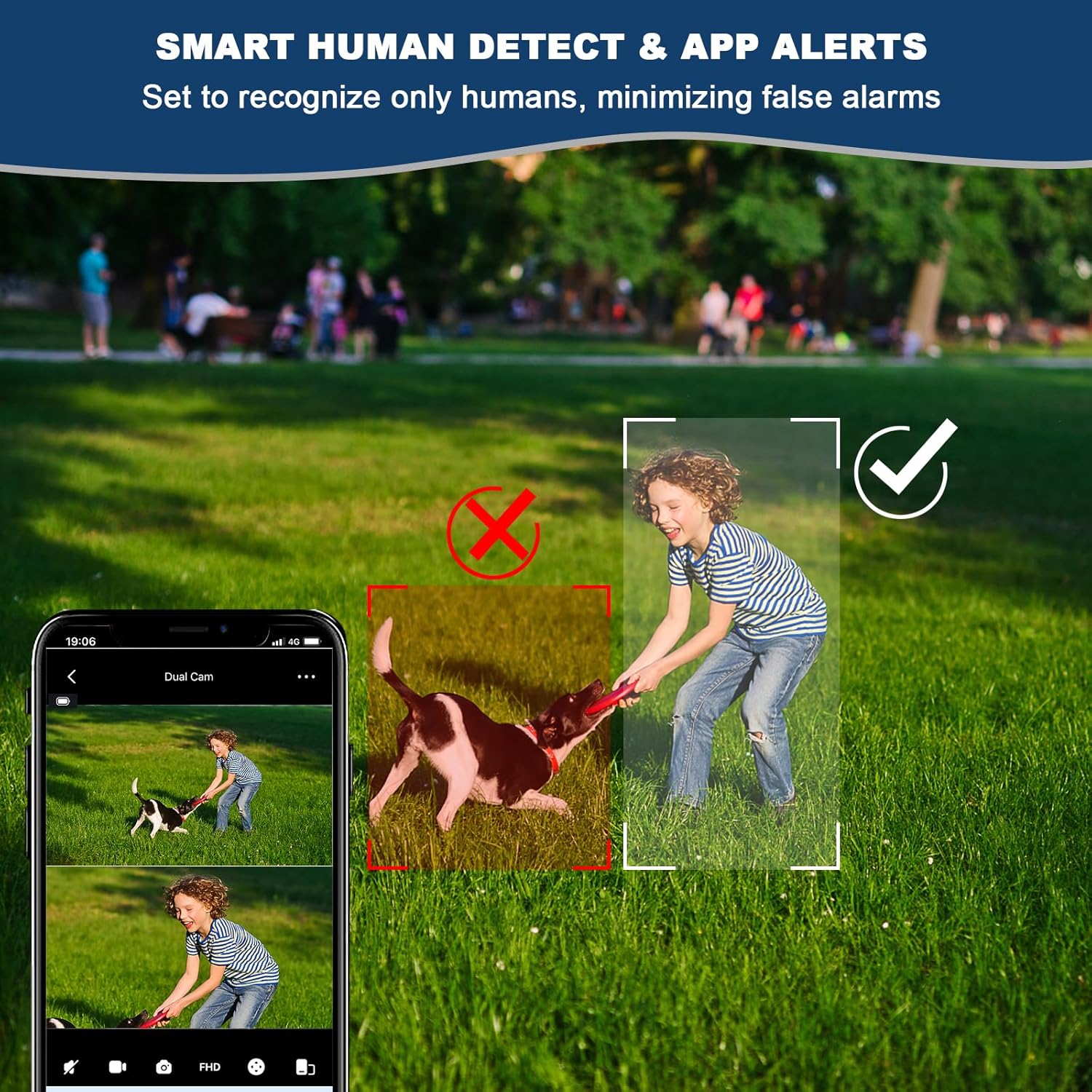 📸🔋【Dual PTZ Lens for 360-Degree Coverage Celluar Security Camera】: Our state-of-the-art cellular security camera features dual PTZ lenses, each non wifi security cameras with a 2.8mm wide-angle lens. This design provides a full 360-degree view, cameras for home security is eliminating the constraints of single-lens cameras. With 355° pan and 90° tilt , 4x digital zoom capabilities for both lenses, you get comprehensive coverage, 4G LTE dual lens security Camera is ensuring all areas of your property are monitored without any blind spots.