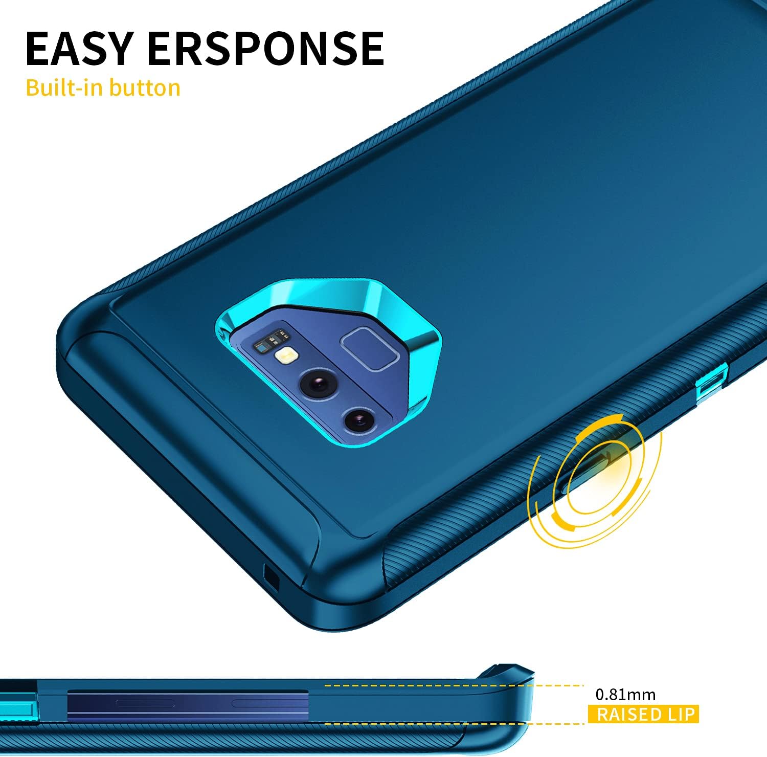 Galaxy Note 9 Case, 3-Layer Shockproof Full Body Protection, Rugged Heavy Duty Hard Cover, Turquoise