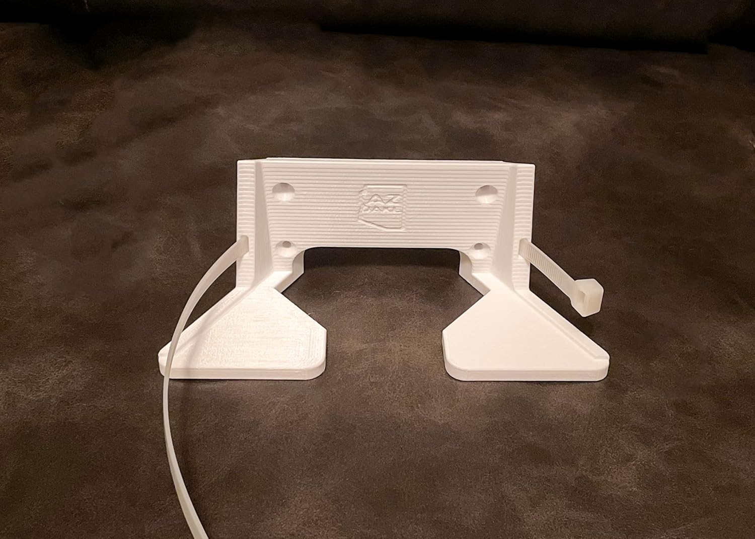 Securely mount your Starlink Mesh or Wifi Router with this wall-mounted holder. The rugged mount clamps your router in place with a heavy-duty zip tie to prevent it from falling or being knocked off a traditional shelf-style mount. The mount features four countersunk holes for easy wall fastening, allowing you to place your router in the optimum location. Made from durable PETG plastic filament, this holder is available in white, with custom colors available upon request. Designed and 3D printed in Arizona, this package includes the mount and a zip tie, but does not include any hardware for wall mounting.