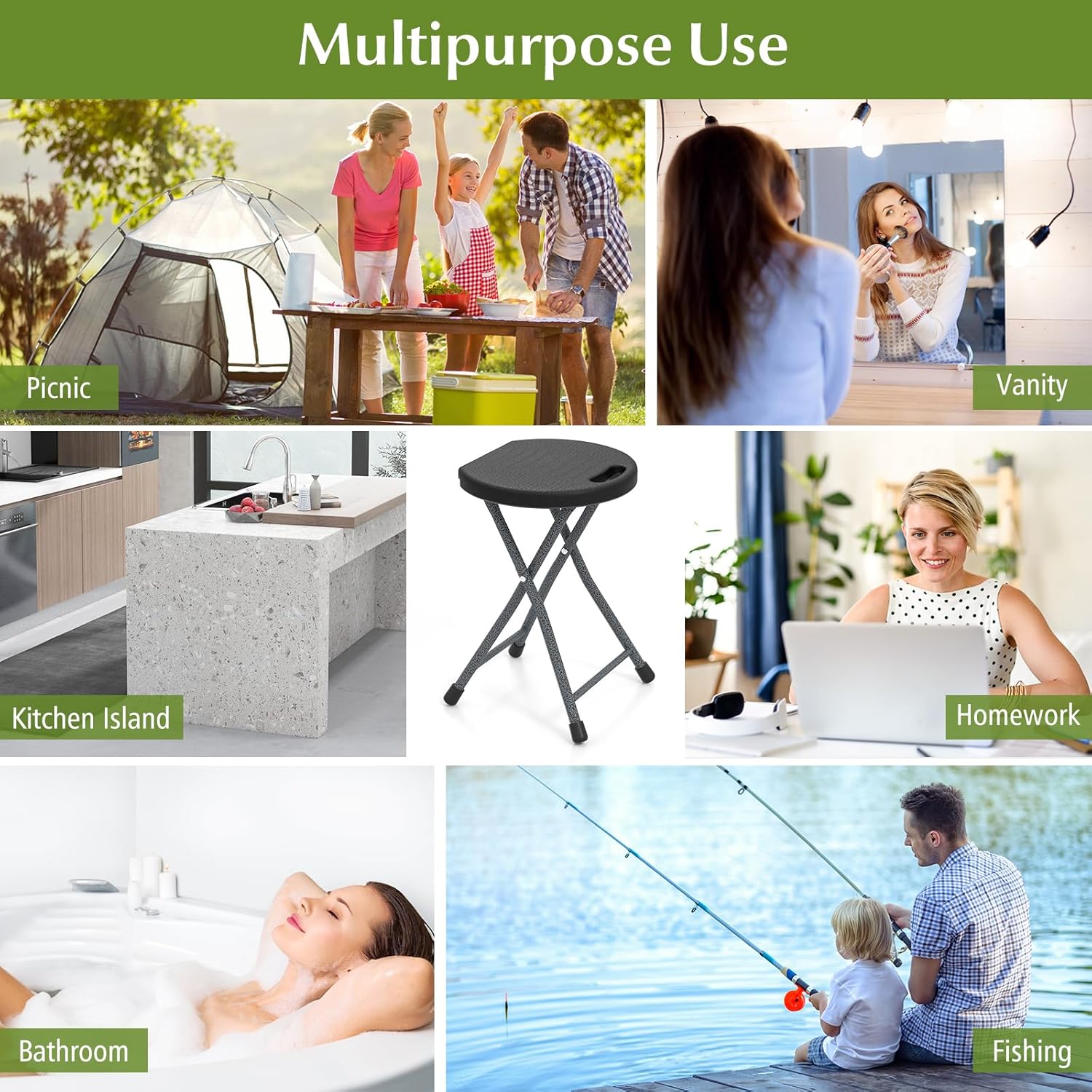 GYMAX Folding Stool, 18in Portable Collapsible Bar Stool with Handle & Steel Frame, 330lbs Sturdy Foldable Lightweight Metal Chair for Outdoor/Indoor Kitchen Home Bar, Assembly Free (Set of 1, 18inch)
