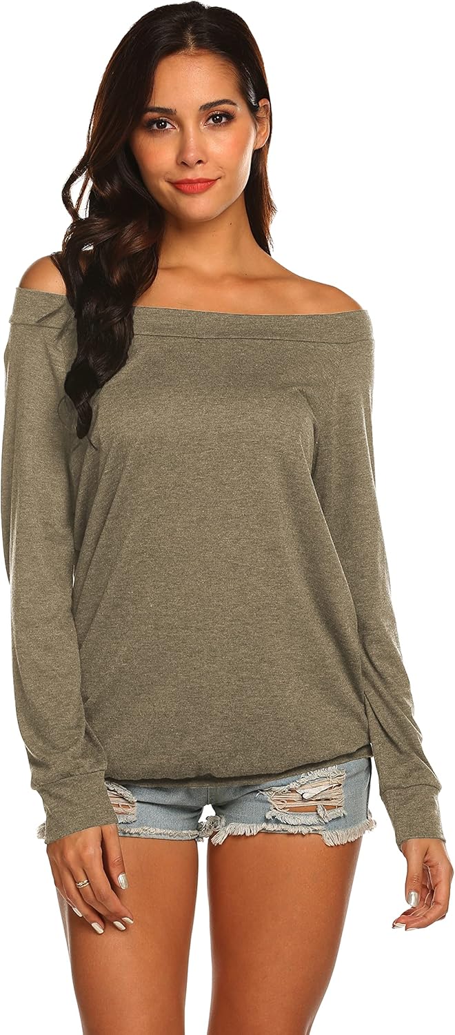 Halife Women’s Off Shoulder Tops Casual Slouchy Long Sleeve Boat Neck Shirts