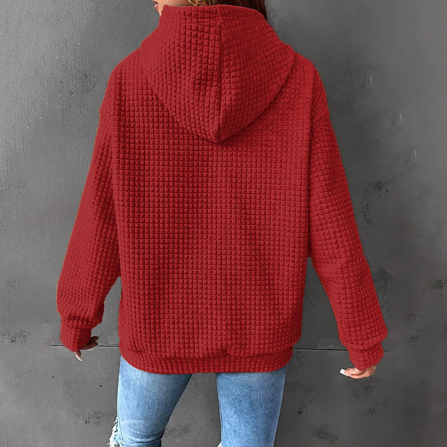 Womens Waffle Knit Hoodies Long Sleeve Drawstring Pullover Sweatshirt