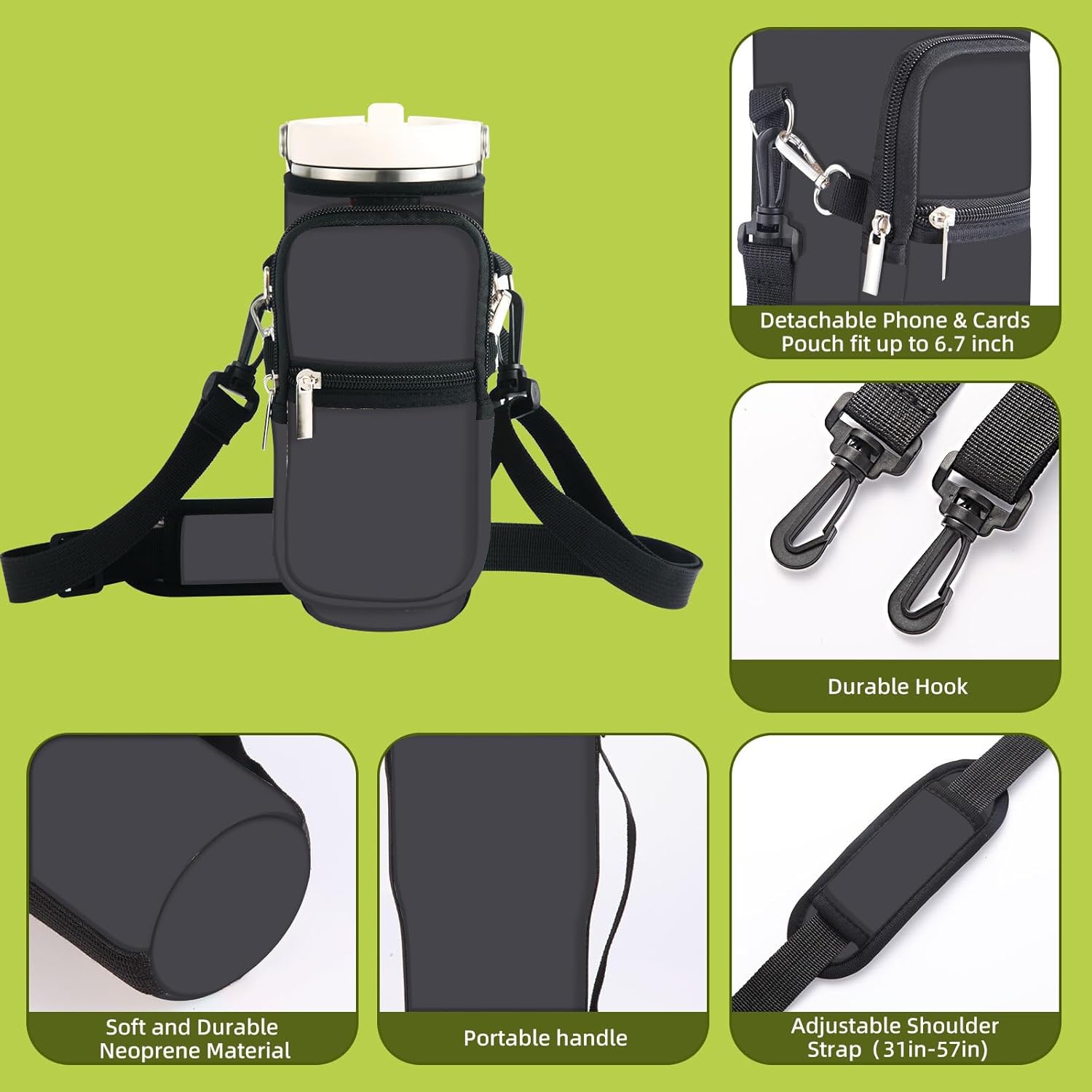 【Perfect Fits for Stanley IceFlow】icolor Water Bottle Carrier Holder Sling Crossbody Bag Fit for Stanley IceFlow Flip Straw 20oz Tumbler Water Bottle with Removable Phone Pocket & Shoulder Strap.The shoulder strap can be easily adjusted between 30″~55″,convenient to carry the water bottle, releases your hands.