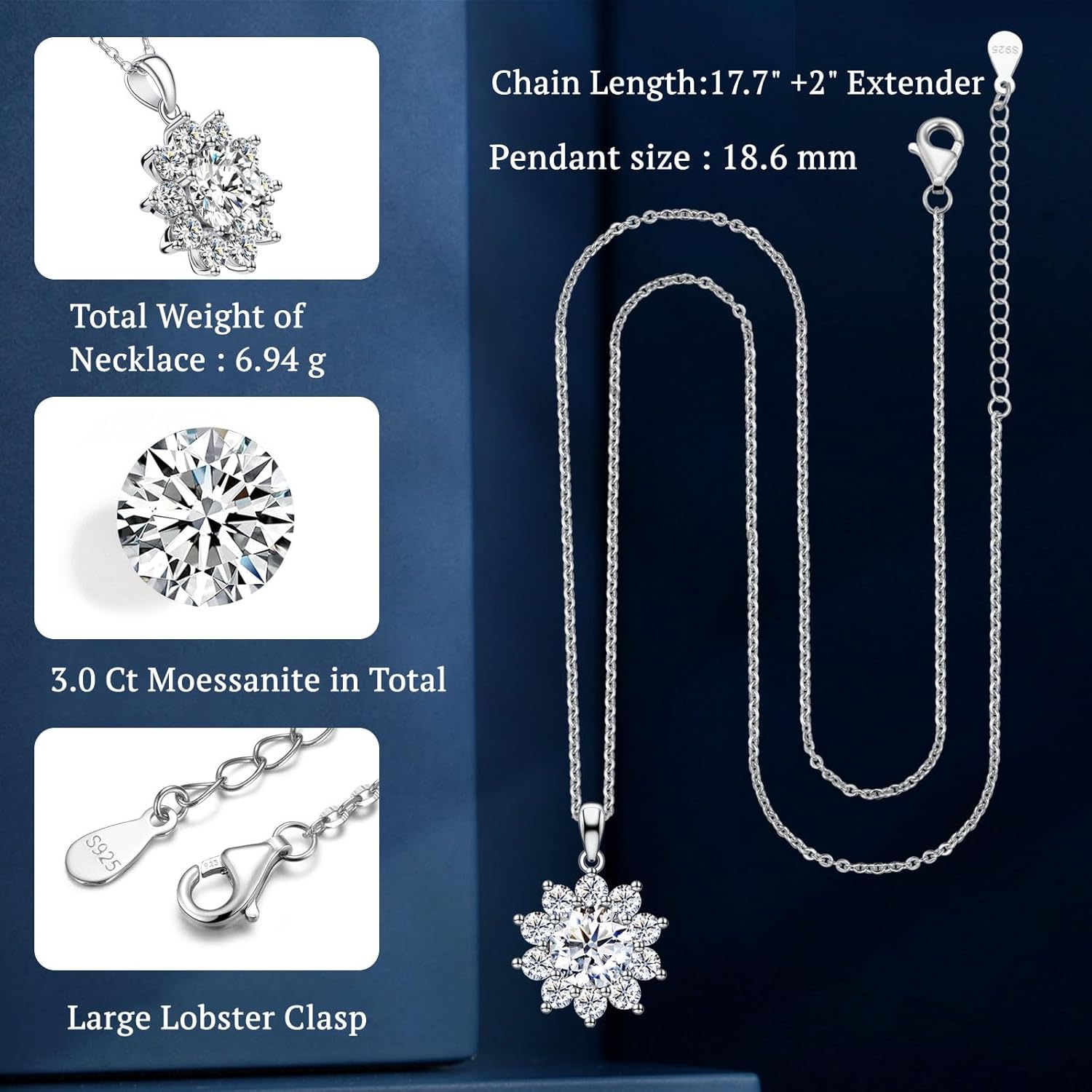 Jewelry for Wife Women Diamond Necklace for Women 1CT-3CT Wedding Anniversary Birthday Gifts for Wife Girlfriend Women’s jewelry Sunflower Moissanite Pendant Necklaces Gift for Her Mom Daughter Grandma on Birthday Anniversary Christmas Motherโs Day Valentineโs Day
