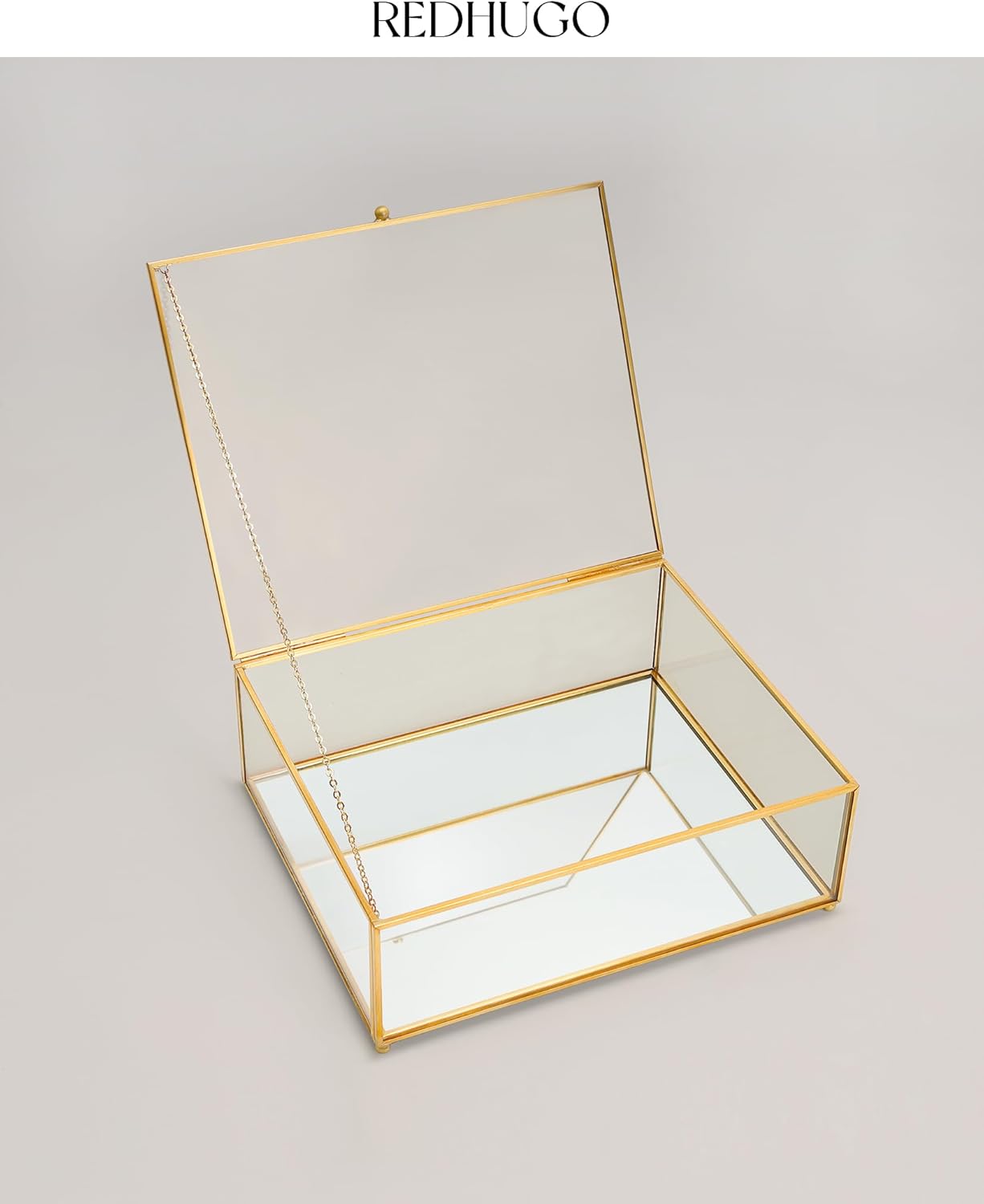 Illuminate Treasured Items: Our brass and glass display box features a brilliantly radiant mirrored base that adds a layer of luxury to your treasured items, enhancing their sense of texture
