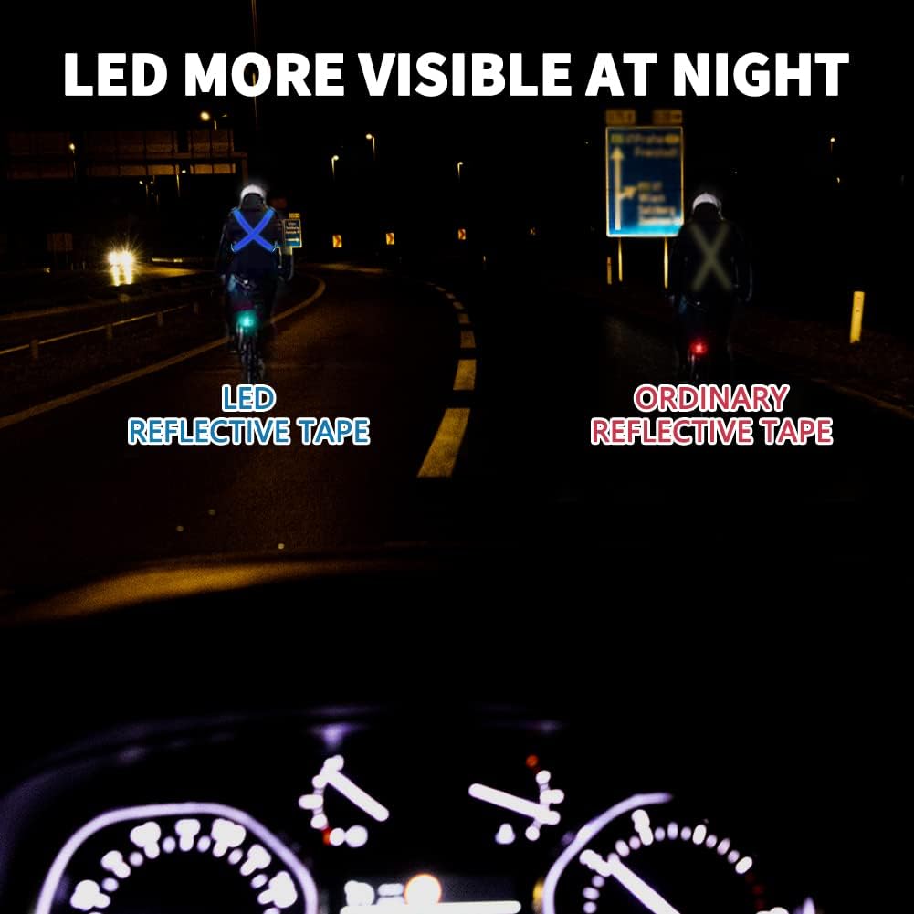 🏃【High-quality Materials & USB Rechargeable】The LED reflective gear tape made of high density polyester cotton,resistant,soft and good breathability.We pay particular attention to detail and every step of the production process is rigorously tested.This LED safety running belt is powered with a USB rechargeable battery.This LED safety running belt is powered by a USB rechargeable battery.Convenient,no need to change batteries!Comes with a USB charging cable and use 5-8 hours on a full charge.