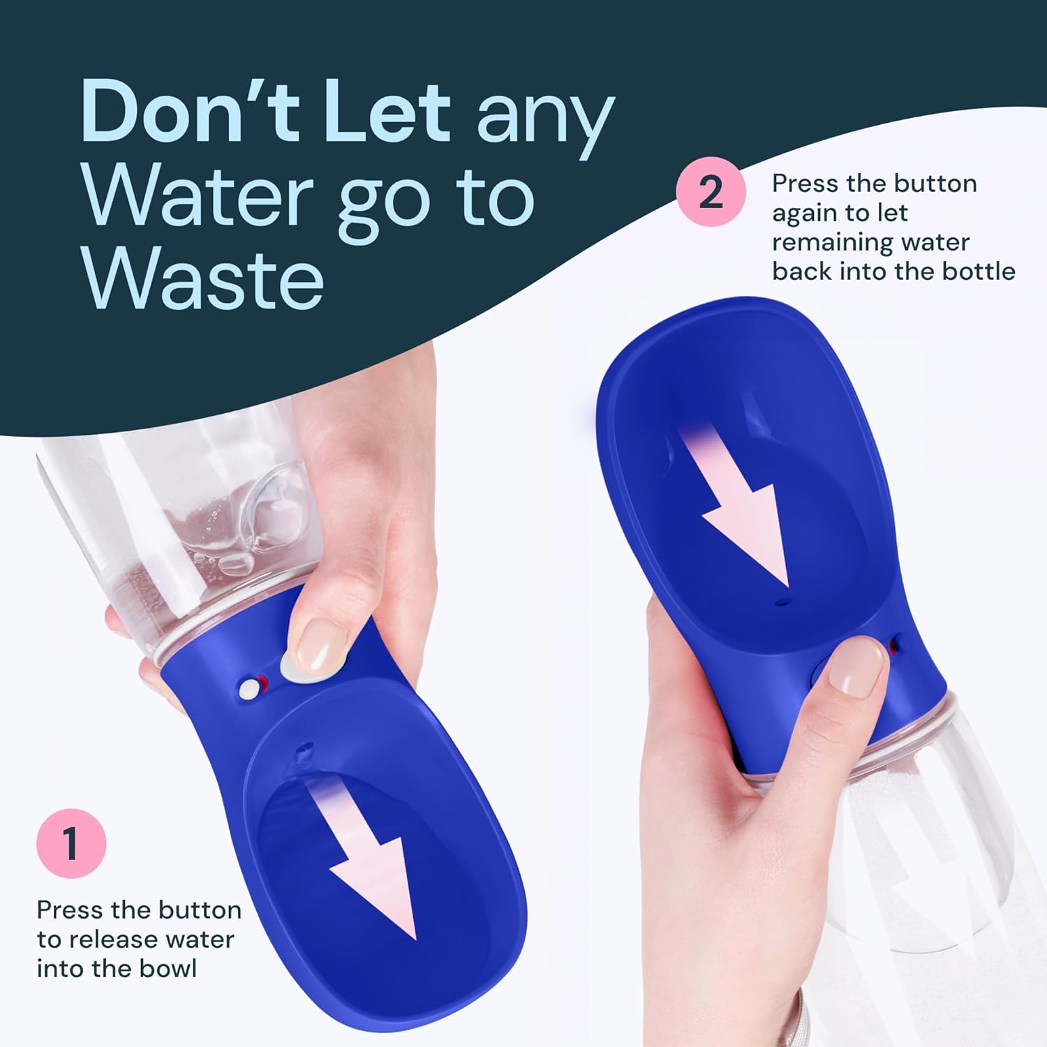 Choose Your Dog Travel Water Bottle Size: Available in two sizes to fit all dog breeds. This compact and lightweight portable water bottle for dogs, weighing under 6 ounces, ensure you’ll have the right capacity without weigh you down during travel