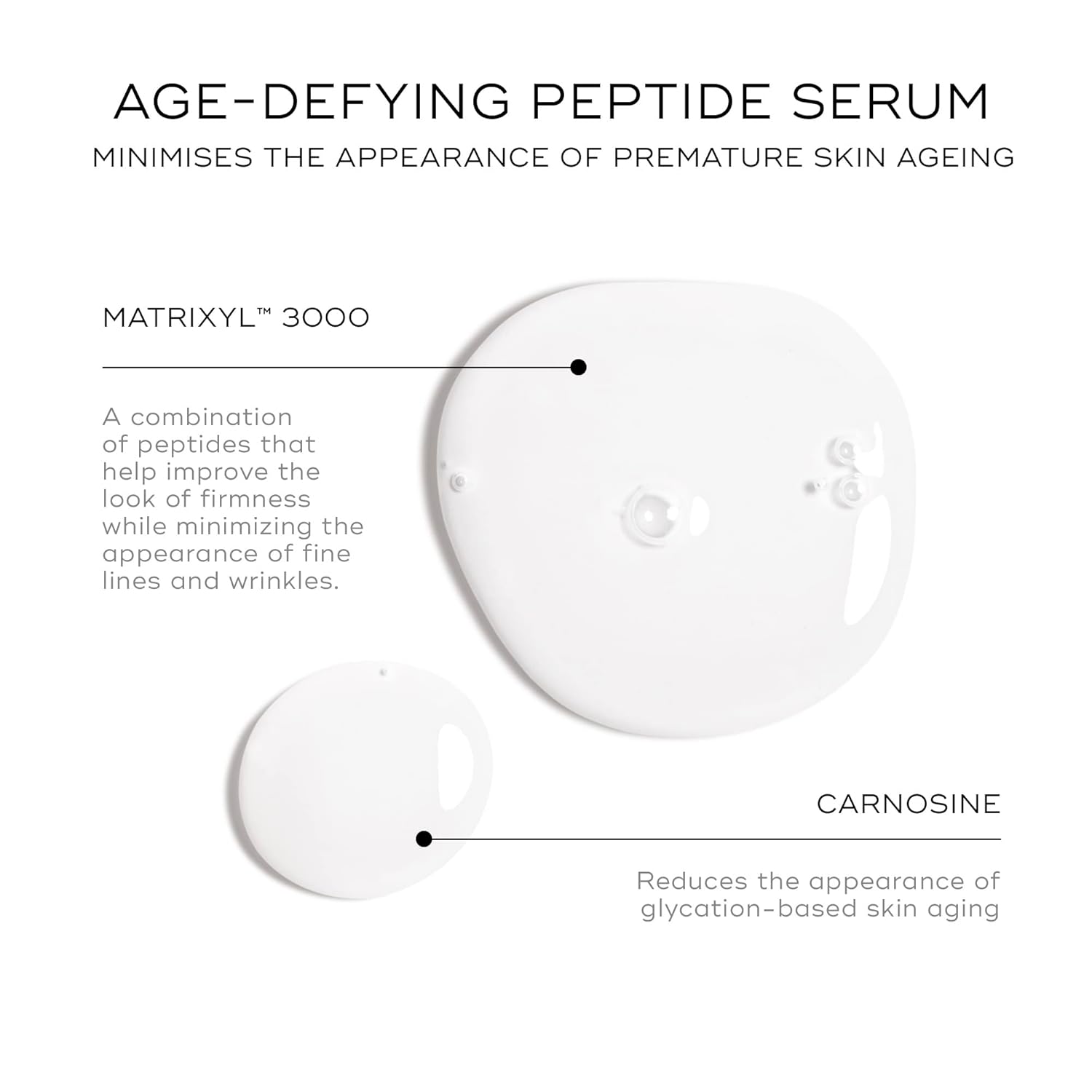 INNOVATIVE PEPTIDE TECHNOLOGY. This powerful serum of vital peptides works to deliver an ageless complexion, softening the appearance of fine lines and wrinkles on the face. Skin is left visibly smooth and supple, with improved firmness overall.