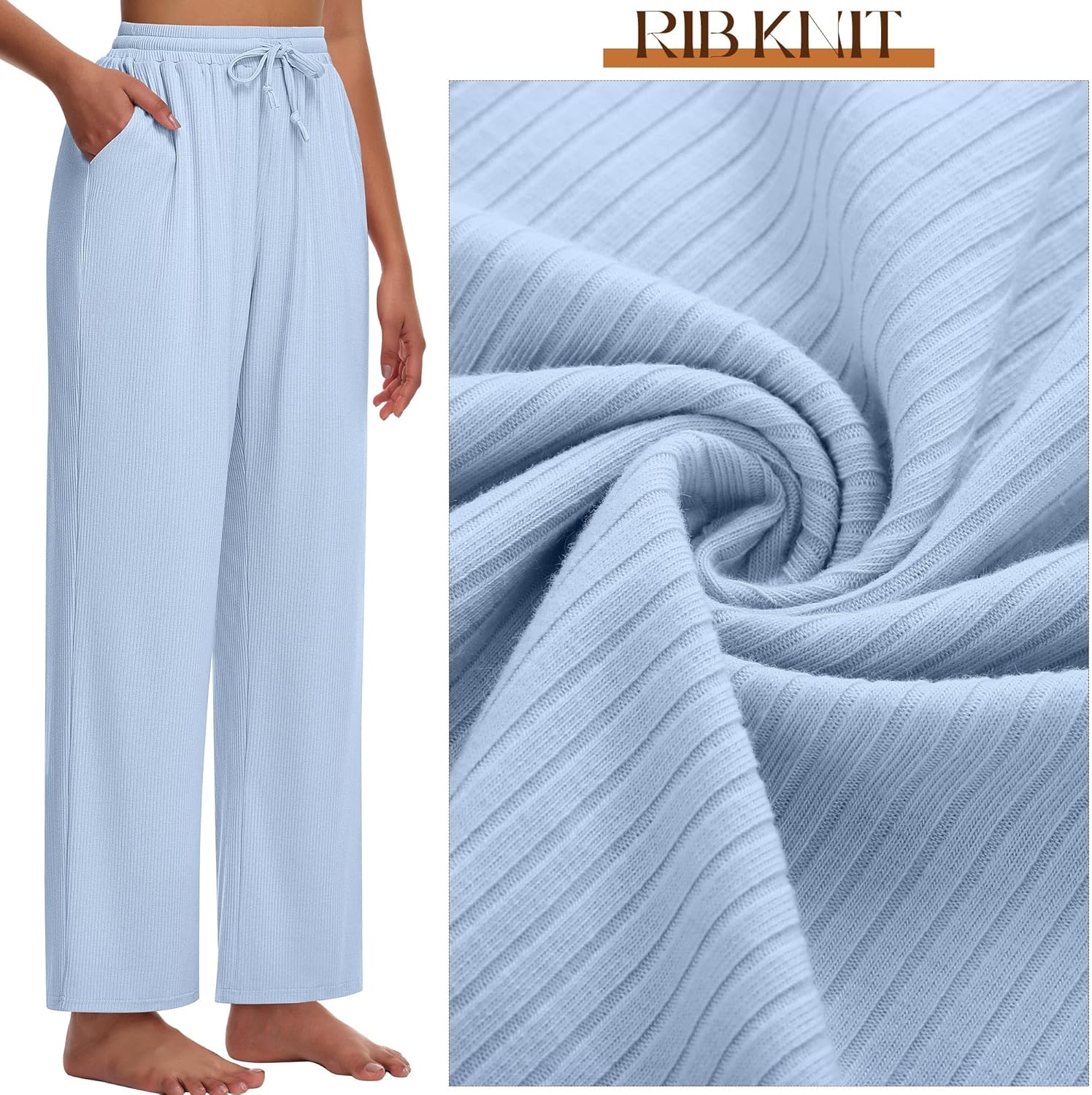 Neer 3 Pack Women’s Lounge Pants with Pockets, Rib Knit Yoga Cozy Pants High Waisted Drawstring Sweatpant Wide Leg Jogger