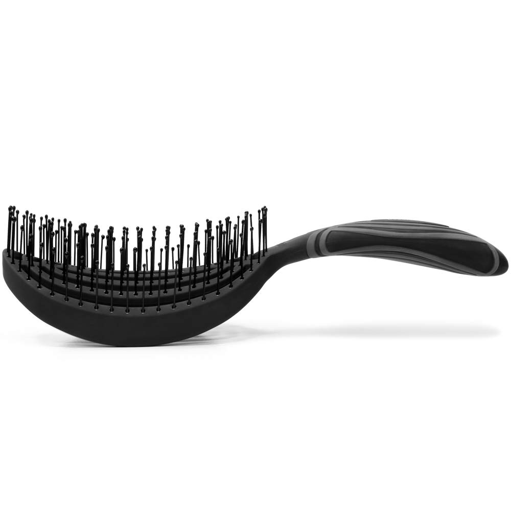 NuWay 4HAIR® DoubleC PRO® U.S. Patented Double Curved Detangling Brush is Hair Dryer Safe (Black)