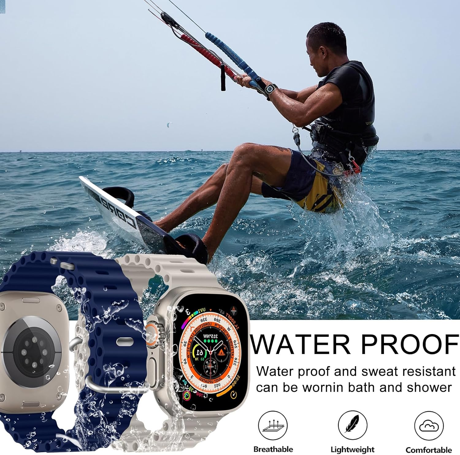 Ocean Silicone Sport Band – Compatible with Apple Watch Ultra 2/Ultra Band 49mm 45mm 44mm 42mm for Men Women, Breathable Soft Waterproof Strap for iWatch Ultra 2, iWatch Ultra Series SE 9/8/7/6/5/4